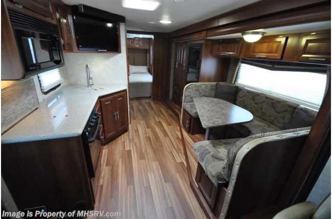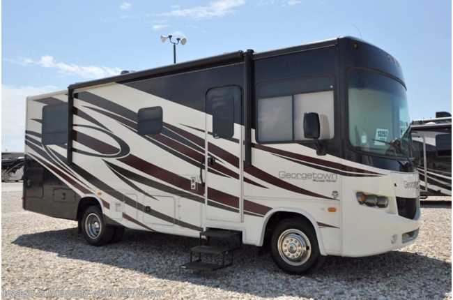 /NH 6/28/16 Used Forest River RV for Sale- 2015 Forest River Georgetown 270S with slide and 4,137 miles. This RV is approximately 28 feet 11 inches in length with a Ford V10 engine, Ford chassis, power mirrors with heat, power shades, 5.5KW Onan generator with 102 hours, power patio awning, slide-out room toppers, water heater, pass-thru storage with side swing baggage doors, full length slide-out cargo tray, clear front paint mask, exterior shower, 5K lb. hitch, automatic leveling system, 3 camera monitoring system, 2 ducted A/Cs, booth converts to sleeper, day/night shades, 3 burner range with oven, solid surface counter, all in 1 bath, glass door shower, king bed, cab over loft, 2 ducted A/Cs and much more. For additional information and photos please visit Motor Home Specialist at www.MHSRV.com or call 800-335-6054.