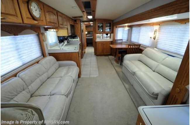 /LA 5/19/2014 Used Holiday Rambler RV for sale - 1996 Holiday Rambler Navigator with slide and 109,688 miles. This unit measures approximately 39 feet in length and features a 400HP Cummins diesel engine with side mounted radiator, Allison 6 speed automatic transmission, Spartan chassis, Jake brake, air brakes, cruise control, tilt/telescoping wheel, Smart Wheel, Onan 10K diesel generator on a slide, power patio awning, window awnings, gas/electric water heater, 50 amp service, power steps, pass-thru storage, exterior freezer, aluminum wheels, keyless entry, black water tank rinsing system, gravel shield, air horns, automatic hydraulic leveling jacks, back-up camera, ducted central A/C, inverter, side by side refrigerator with ice maker, two TVs, soft touch vinyl ceilings washer/dryer combo and ceramic tile floors . For additional information and photos please visit Motor Home Specialist at www.MHSRV .com or call 800-335-6054.