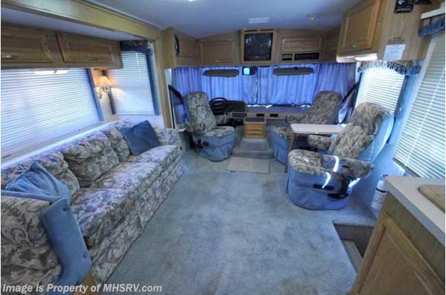 PICKED UP - *Consignment Unit* Used Fleetwood RV for Sale - 1999 Fleetwood Bounder with slide, model 34V: Only 20,618 miles! This RV is approximately 34' in length and features a powerful Ford 6.8L V-10 engine, Ford chassis, automatic trans, 5.5KW Onan generator, Power Gear leveling system and (2) TVs. For complete details visit Motor Home Specialist at www.MHSRV.com or 800-335-6054: The #1 Volume Selling Motor Home Dealer in Texas.