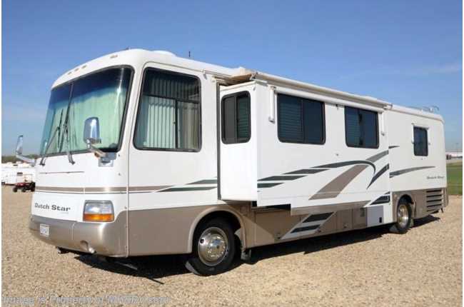 Used Newmar RV /TX 4/13/13/ - 2000 Newmar Dutchstar (3851) with slide and 68,603 miles. This RV has all new tires, Cummins 300HP engine with side radiator, Allison 6 speed transmission, Spartan raised rail chassis, power mirrors with heat, 7KW Powertech generator, power patio awning, door and window awnings, electric/gas water heater, 50 Amp power cord reel, pass-thru storage, exterior freezer on slide-out tray, 5K lb. hitch, automatic hydraulic leveling system, back up camera, inverter, ceramic tile floor, dual pane windows, solid surface counters, ice maker, 2 ducted roof A/Cs and 2 TVs. For complete details visit Motor Home Specialist at MHSRV .com or 800-335-6054.