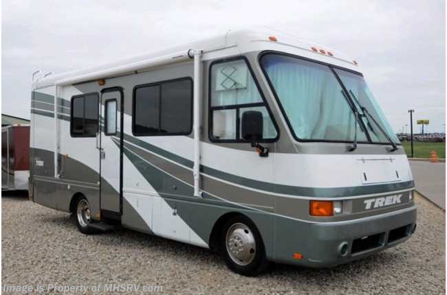 /TX 5/1/14 Used Safari RV for Sale- 2001 Safari Trek 2480 is approximately 26 feet in length with 48,539 miles, Workhorse chassis, power mirrors with heat, 4KW generator with 340 hours, patio awning, window awning, exterior shower, solar panel, hydraulic leveling system, inverter, dual pane windows, convection microwave, solid surface counter, all in 1 bath, ducted A/C and LCD TV. For additional information and photos please visit Motor Home Specialist at www.MHSRV .com or call 800-335-6054.