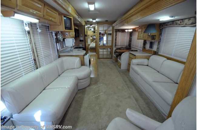 Used Alfa RV /TX 3/8/13/ - 2002 Alfa See Ya (36FD) with 2 slides and 53,253 miles. This RV is approximately 40 feet in length with a Caterpillar 330HP diesel engine, Allison 6 speed automatic transmission, Freightliner chassis, 7.5KW diesel generator, power patio awning, door and window awnings, power mirrors with heat, electric/gas water heater, exterior freezer, half length slid out cargo tray, 5 solar panels, 5K lb. hitch, hydraulic leveling system, back up camera, inverter, dual pane windows, solid surface counters, king size bed, ducted A/C system, and 3 TVs. For complete details visit Motor Home Specialist at MHSRV .com or 800-335-6054.