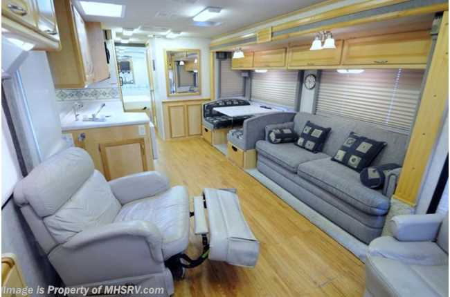 Used Fleetwood RV /TX 6/12/13/ - 2003 Fleetwood Southwind (32V) with 2 slides and 73,269 miles. This RV is approximately 32 feet in length with a 8100 Vortec engine, Workhorse chassis, 5.5KW Onan generator, power patio awning, slide-out room toppers, power mirrors with heat, electric/gas water heater, exterior shower, solar panel, 5K lb. hitch, hydraulic leveling system, back up camera, dual pane windows, solid surface kitchen countertop, all in1 bath, memory foam mattress, 2 ducted roof A/Cs and 2 TVs. For additional information and photos please visit Motor Home Specialist at www.MHSRV .com or call 800-335-6054.