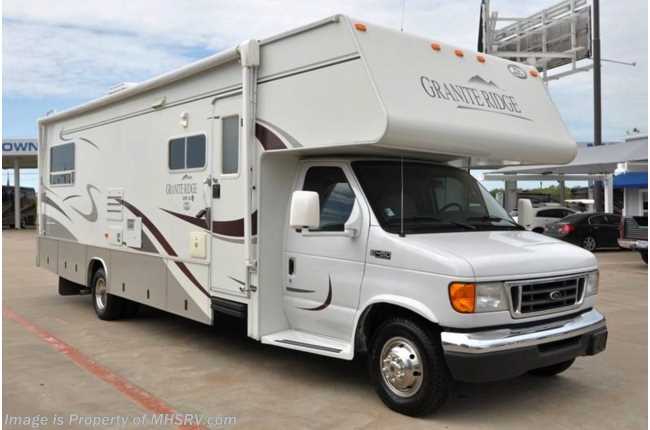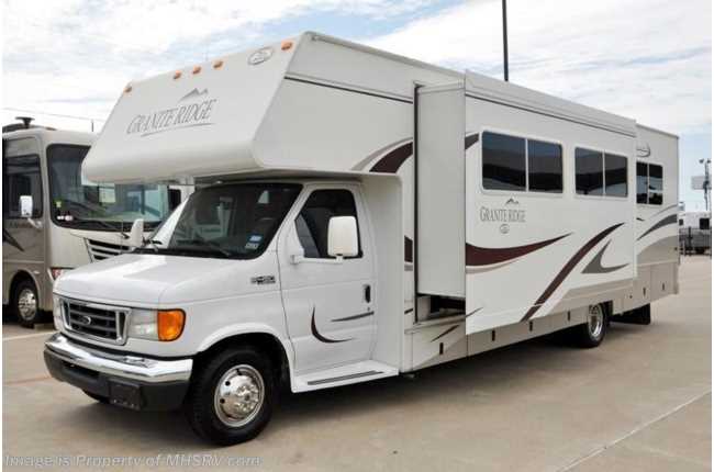 **Consignment** Used Jayco RV /TX 10/4/12/ 2004 Jayco Granite Ridge (3100SS) with slide and only 7,881 miles. This RV is approximately 31' in length with a 6.8L Ford engine, Ford 450 chassis, 4KW Onan generator with 256 hours, power patio awning, electric/gas water heater, 5K lb. hitch, back-up camera, ducted roof A/C and 2 TVs. For complete details visit Motor Home Specialist at MHSRV .com or 800-335-6054.