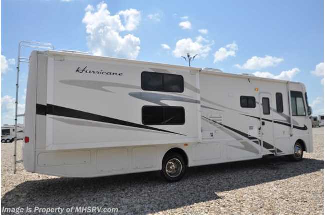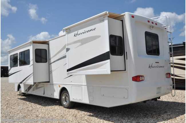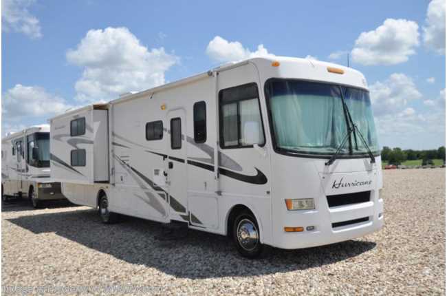 8-14-17 Used Four Winds RV for Sale- 2007 Four Winds Hurricane 34B Bunk Model with 3 slides and 20,343 miles. This RV is approximately 35 feet 4 inches in length and features a Ford engine and chassis, power mirrors with heat, 5.5KW Generac generator with 182 hours, patio awning, slide-out room toppers, electric & gas water heater, wheel simulators, middle LED running lights, exterior shower, 5K lb. hitch, automatic hydraulic leveling system, rear camera, soft touch ceilings, both converts to sleeper, day/night shades, fold up kitchen counter, microwave, 3 burner range with oven, glass door shower, 2 TV's, 2 ducted A/Cs and much more. For additional information and photos please visit Motor Home Specialist at www.MHSRV.com or call 800-335-6054.