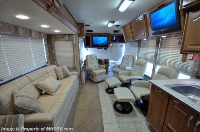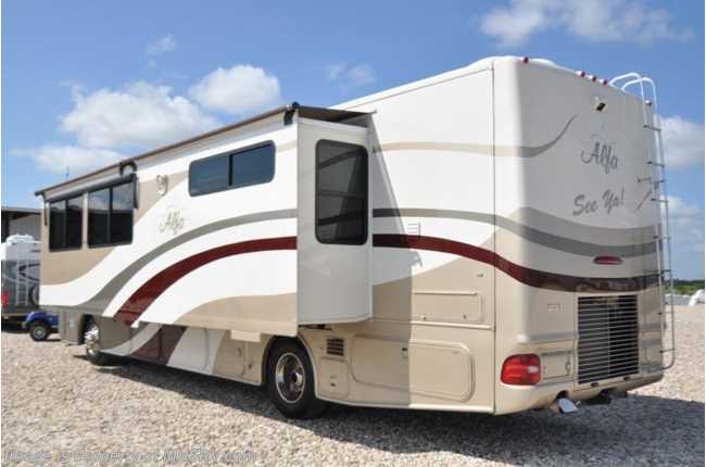 Used Alfa RV for Sale - 2008 Alfa See-Ya with full wall slide, model SY40LS: Only 19,921 miles! This RV is approximately 40' in length and features a powerful 360 HP Cummins diesel engine, Freightliner raised rail chassis, inverter, Allison 6-speed automatic trans, 7.5KW diesel generator, automatic leveling system, surround sound and (3) Flat Screen TVs. For complete details visit Motor Home Specialist at www.MHSRV.com or 800-335-6054: The #1 Volume Selling Motor Home Dealer in Texas.