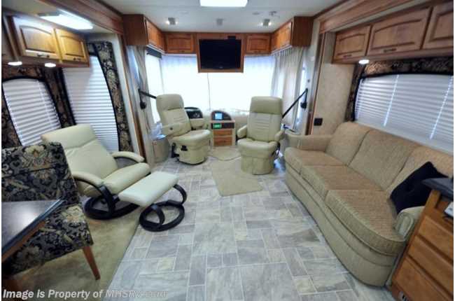Used Holiday Rambler RV /TX 12/3/12/ - 2008 Holiday Rambler Neptune (37PDQ) with 4 slides and only 19,509 miles. This RV is approximately 36' in length with a 340HP Cummins diesel engine, Allison 6 speed automatic transmission, Roadmaster raised rail chassis, 8KW Onan generator with 80 hours, power patio awning, door awning, slide-out room toppers, electric/gas water heater, 50 Amp service cord reel, pass-thru storage, bay heater, 7K lb. hitch, automatic hydraulic leveling system, 3 camera monitoring system, Magnum inverter, solid surface counter, dual ducted roof A/C system and 2 HD TVs with CD/DVD players.. For complete details visit Motor Home Specialist at MHSRV .com or 800-335-6054.