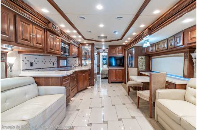 7/26/21 **Consignment** Used Tiffin RV for sale - 2010 Tiffin Allegro 43QGP Bath ½ Model with 4 slides and 70,631 miles. This RV is approximately 43 feet in length and features an automatic hydraulic leveling system, 3 Ducted A/Cs with heat pumps, 10KW Onan generator, aluminum wheels, 10K lb. hitch, tilt and telescoping smart wheel, power pedals, GPS, keyless entry, Aqua Hot, power patio awning, power door awning, 2 cargo trays, pass-thru storage with side swing doors, docking lights, black tank rinsing system, water filtration system, power water hose reel, 50 Amp power reel, exterior shower, exterior freezer, exterior entertainment, clear paint mask, fiberglass roof, inverter, dual pane windows, power solar/black out shades, power roof vents, ceiling fans, 2 burner range, dishwasher, convection microwave, residential refrigerator with ice maker, solid surface kitchen counters with sink covers, stackable washer/dryer, glass shower door with seat, King Bed, 4 Flat Panel TVs, and much more. For more information and photos please visit Motor Home Specialist at www.MHSRV.com or call 800-335-6064.
