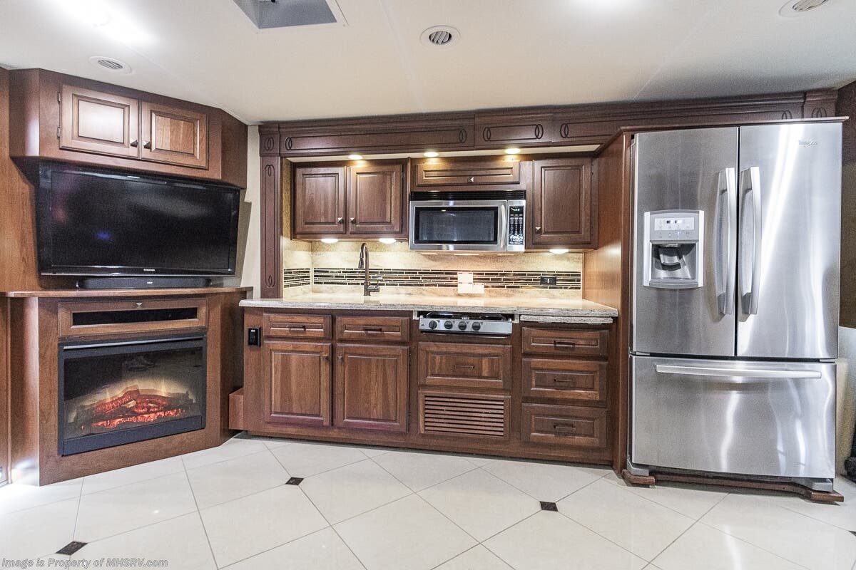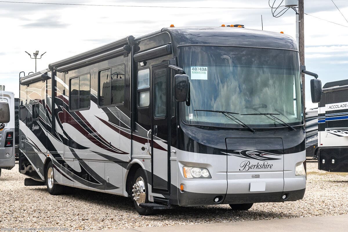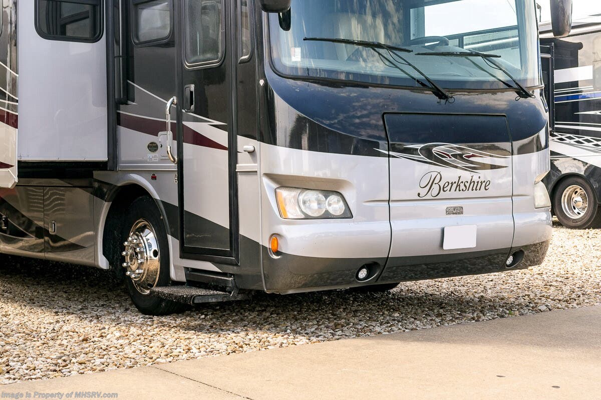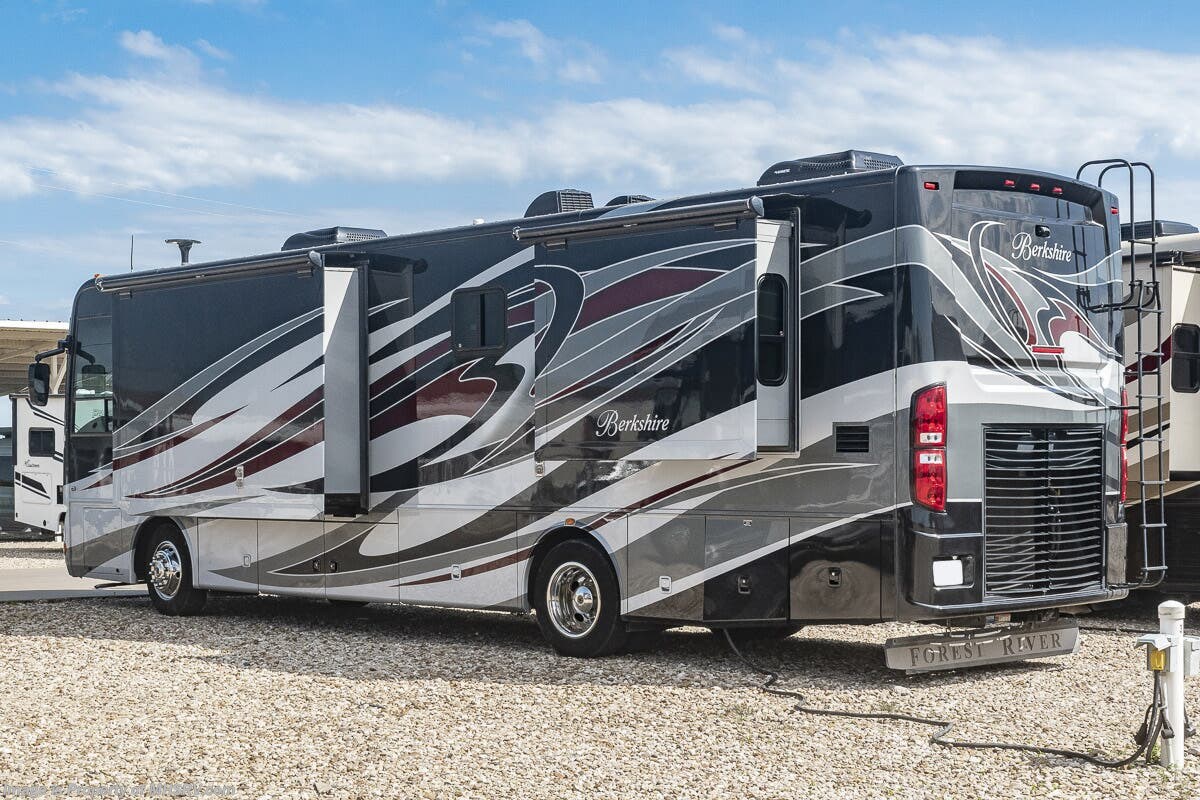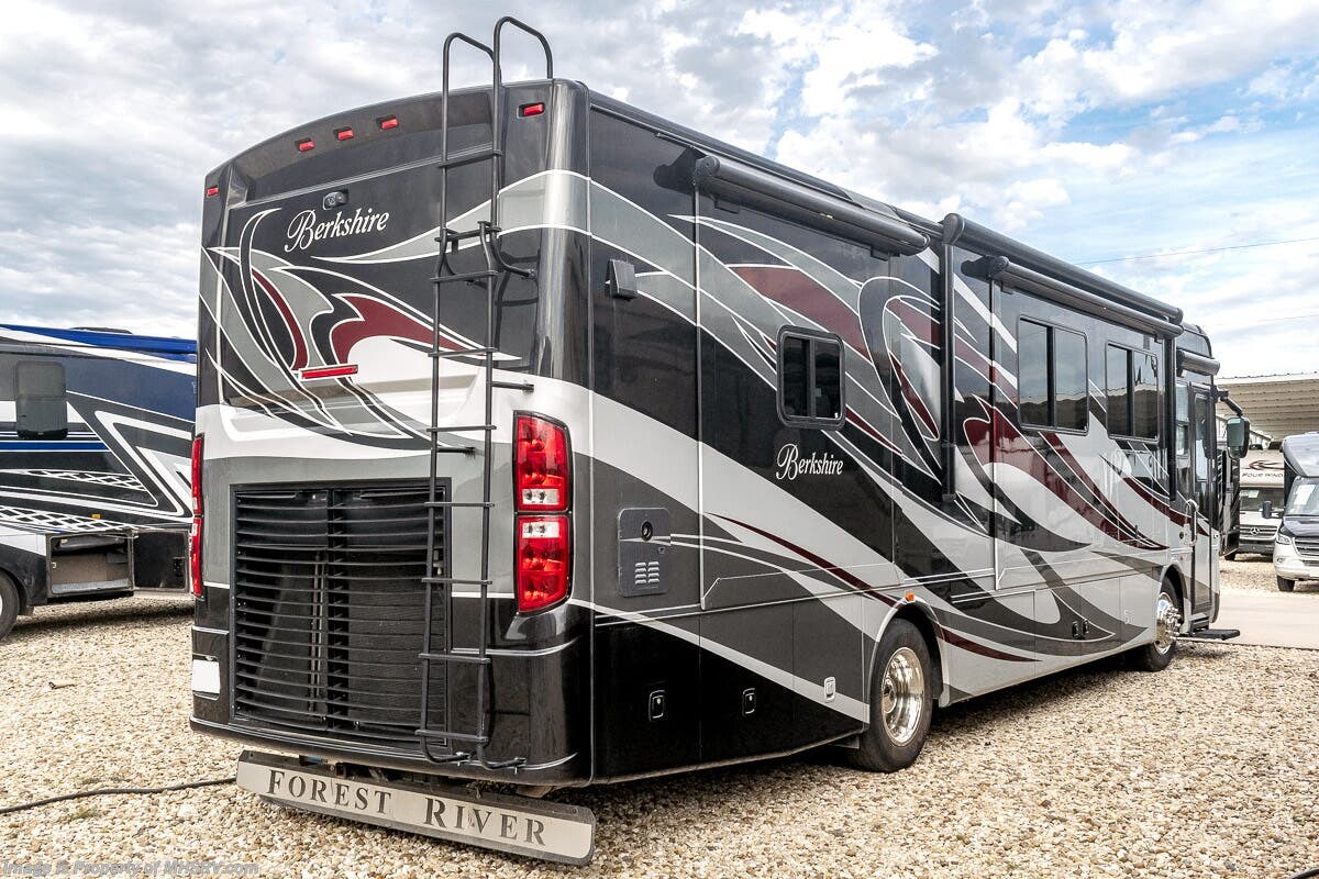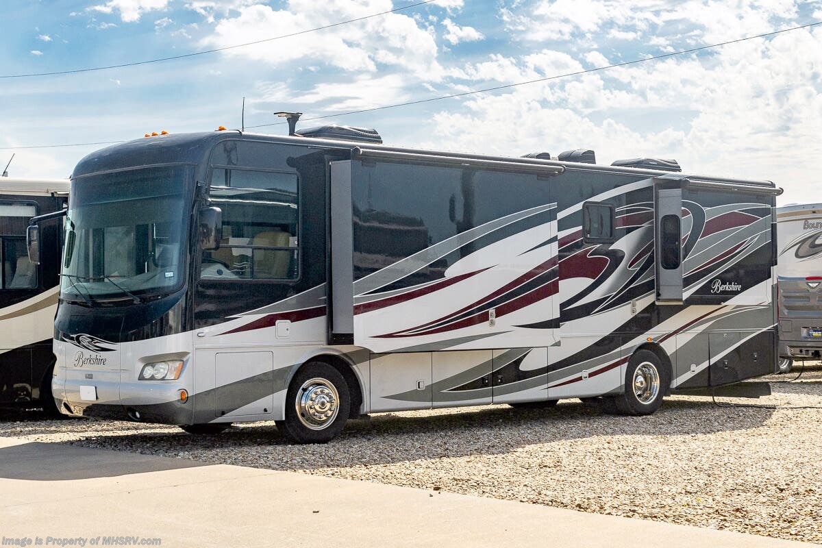 5/17/23 Used Forest River RV for sale – 2013 Forest River Berkshire 360QL is approximately 37 feet in length with 4 slides, 49,842 miles and features automatic leveling, 3 camera monitoring, 2 ducted A/Cs with heat pump, Onan diesel generator, Cummins diesel engine, Freightliner chassis, tilt & telescoping steering, secondary engine brake, cruise control, water manifold, power patio awning, power door awning, pass-thru storage with side swing door, water filtration system, exterior shower, exterior entertainment, clear paint mask, fiberglass roof, airhorns, inverter, ceramic tile, 7 foot ceiling, fireplace, hardwood cabinets, power roof vents, power shades, solid surface kitchen counters with sink covers, convection microwave, residential refrigerator with ice maker, 3 burner range, glass shower door, combination washer & dryer, theater seats, king bed, 3 flat screen TVs and much more. For additional information and photos, please visit Motor Home Specialist at www.MHSRV.com or call 800-335-6054.