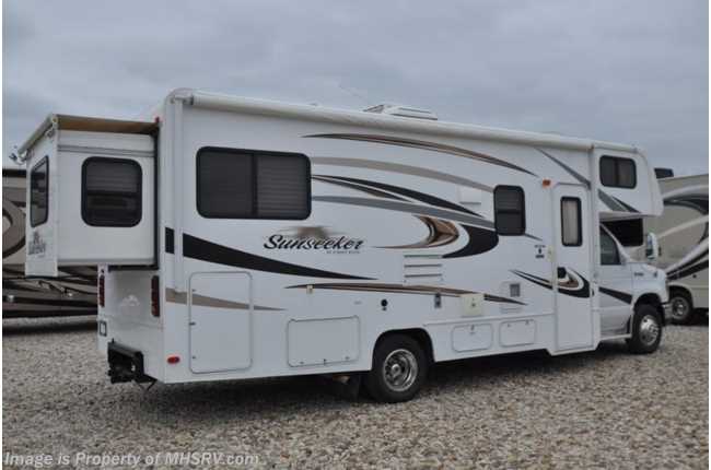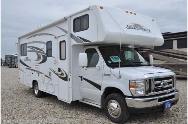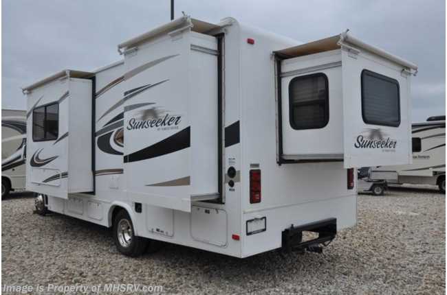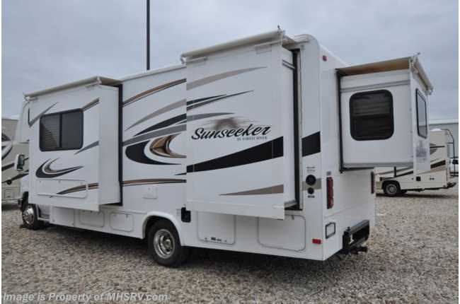7-11-17 Used Forest River RV for Sale- 2014 Forest River Sunseeker 2500TS with 3 slides and 22,303 miles. This RV is approximately 26 feet 2 inches in length and features a Ford engine and chassis, power mirrors with heat, GPS, power windows and door locks, dual safety airbags, 4KW Onan generator, power patio awning, slide-out room toppers, water heater, pass-thru storage, wheel simulators, Ride Rite air assist, exterior shower, rear camera, exterior radio, booth converts to sleeper, night shades, fold up kitchen counter, microwave, 3 burner range with oven, glass door shower, cab over loft, 2 flat panel TV's, ducted A/C and much more. For additional information and photos please visit Motor Home Specialist at www.MHSRV.com or call 800-335-6054.