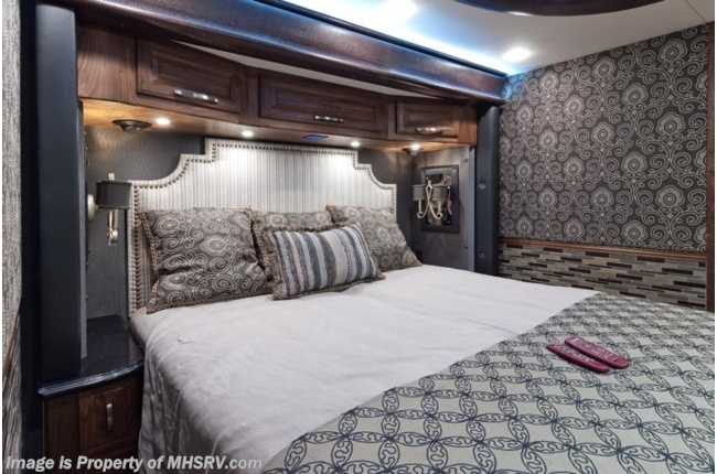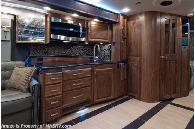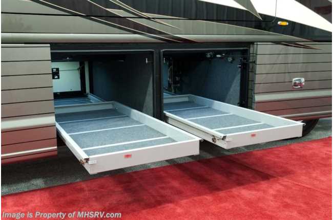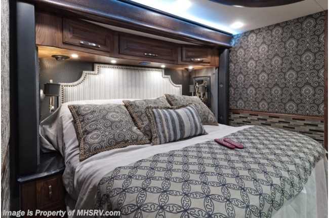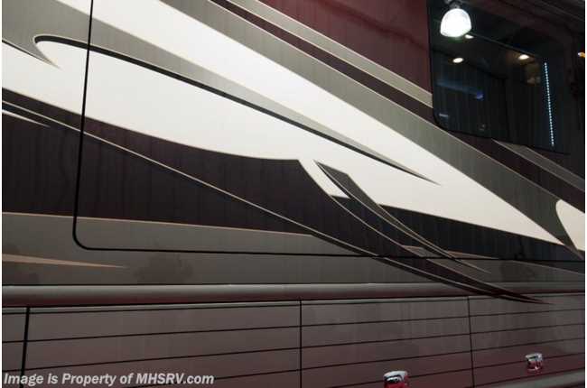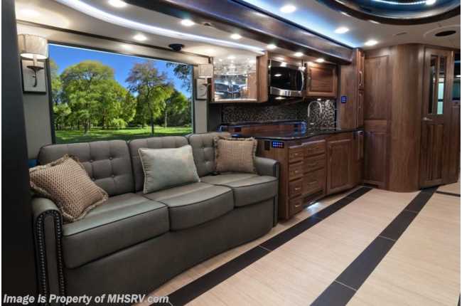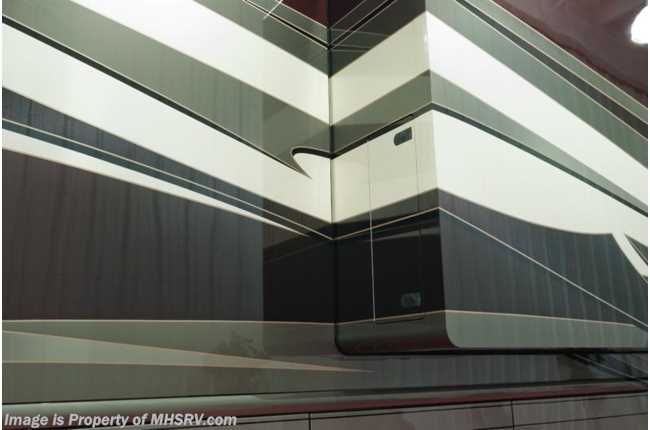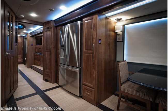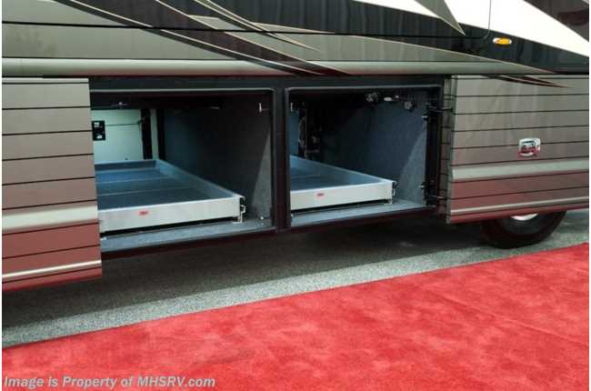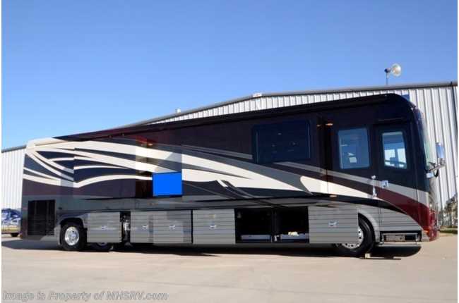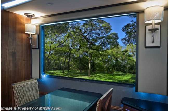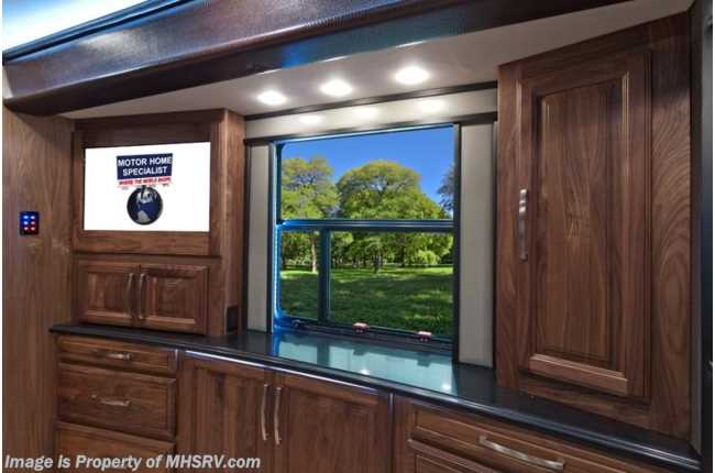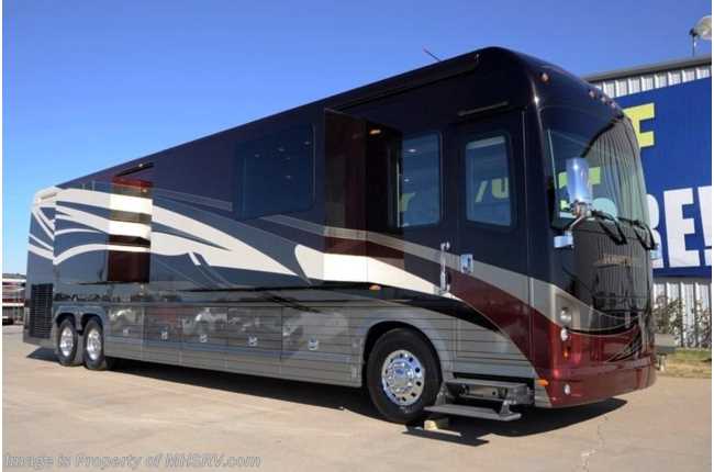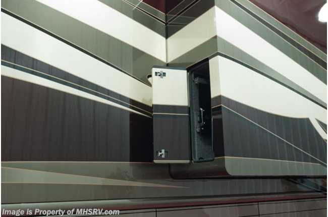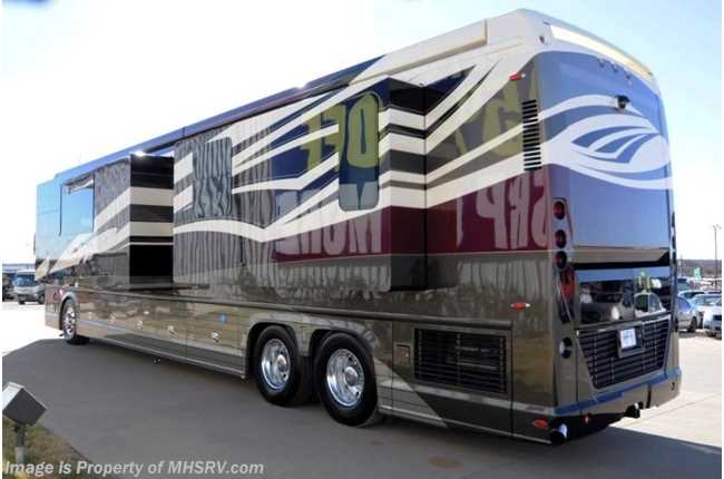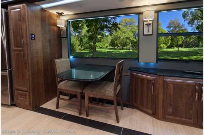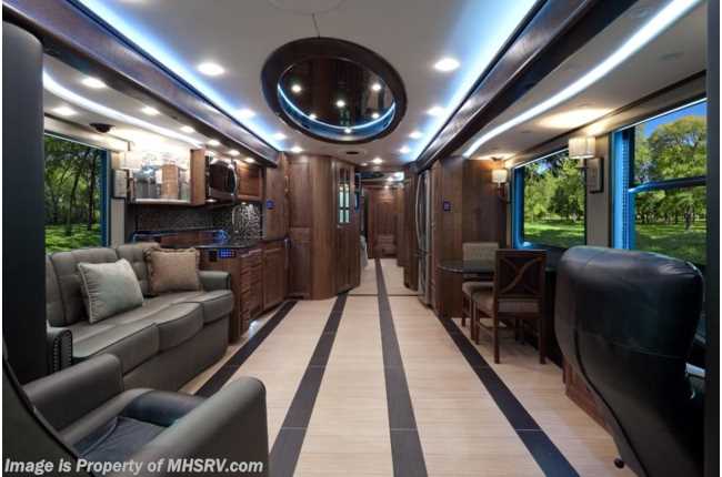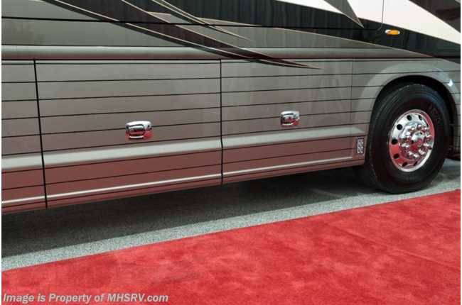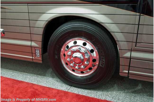 Additional Features Include: • ABS anti-lock braking system w/automatic slack adjusters • Air disc brakes on all wheels • Air quick connect in storage bay • Alcoa aluminum wheels w/ Dura-Bright protection • Allison Transmission with Retarder • Alternator - 320-amp • Automatic traction control (ATC) • Auxiliary 12v air compressor • Chassis – TravelRide II by Foretravel • All air ride with: • 4 outboard-mounted air bags (drive axle) • 2 air bags (IFS front axle) • 2 air bags (tag axle) • Front axle - IFS (independent front suspension) • HWH - computerized air leveling system • HWH - active air system • Receiver hitch - 20000 lb. rated • Michelin Tires: 365/70R22.5 Front-315/80R22.5 Rear • 2 Roof-mounted electric patio awnings • Awning shells • 2 Sliding cargo trays • 4 Docking lights with switch in dash & bedroom • Dual-pane tinted & insulated windows • Easy view one-piece windshield • Electric dump valves • Electric entry step (Executive) • Electric utility reels - water & power • Fiberglass roof & sub floor (one-piece) • Flush kit • Fog lights • Fuel fill - on both sides of coach • Gray water bypass for holding tank • Heated/remote triple head chrome mirrors w/LED turn signals • Lighted entry door w/ assist handle/ keypad/doorbell • LED Marker lights • Paint protection below windshield • Full body paint w/ clear coat finish • Parallel storage doors • Porch light • Remote storage door locks • Roof AC drains • Stainless steel lined utility bay • TV antenna - electric with booster • TV outlet and 12v outlet in storage bay • Utility Station • Xenon low beam headlights • 12 volt accessory receptacle • Battery boost switch • Motorized back-up camera with control at dash • Mirror mount cameras w/ color back-up monitor • Hand held CB at dash • Compass & outdoor temperature • Villa residential co-pilot seat 6 way power w/footrest & headrest • Dash AC controls for co-pilot • Generator auto start/stop • GPS/AM/FM/CD in dash (w/ sat. radio) • Passenger satellite/GPS monitor • MP3 input at dash • Throttle & brake power adjust pedals • Knoedler air ride pilot seat • Silverleaf digital glass dash • Power tilt & telescoping steering wheel • Wood grain Smart Wheel steering wheel • Electric Windshield / privacy shade & sunblock • Built in alarm clock in bedroom • Component audio & digital video cables • 2-burner electric cook top • Home theater speaker system in LR • DVD - Blue-ray - high def • Interior LED Lighting • Inverter/power monitor panel in living room area • LED Lighting accent under counters & window trim • Microwave • 120v electric refrigerator w/ice & water in door • In motion satellite system w/ HD DVR receiver • 2nd HD satellite receiver • Silverleaf Total Coach monitor • Remote tire pressure sensors • TV antenna with booster • Washer/dryer connections • Powered step-well cover with two switch locations • China toilet • Designer window treatment w/ electric day/night shades • Electric exhaust fan in bath & toilet room w/auto rain sensor • Drinking water & ice maker water filter • Electric Floor Heat (with approved flooring) • Multiplex lighting system • Queen bed (60” x 77”) (66” x 77” floor plan dependent) • Slide-out rooms flush w/ sidewalls when retracted • Slide-out rooms pneumatic sealed • Natural Quartz countertops • Stainless steel kitchen sink w/covers • Tile floor (LR/kit/bath/D & P area) • Built in vacuum • Handcrafted cherry/walnut/maple wood cabinetry • Built to RVIA specifications • Carbon monoxide detector • Daytime running lights • Lighted entry-door assist handle • Electronic Safe • Security system • Smoke detector • 12 volt battery disconnect • 20 kw diesel generator • 2 – 2800 w inverter/charger • 50 amp shoreline connection • Air conditioning & heating with hidden returns • Ducted AC with 3 roof airs (40-42) • Ducted AC with 4 roof airs (45) • Auto temp. start for generator • Electrical surge-suppression system • Heat pumps on roof AC’s • Hydronic heating • Low-battery generator auto-start