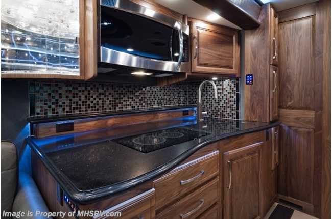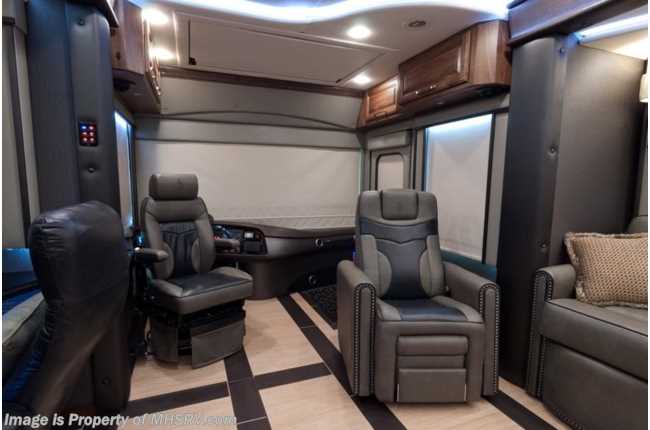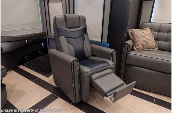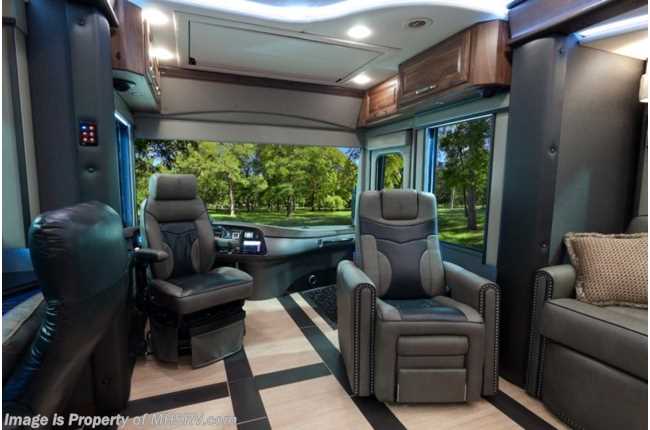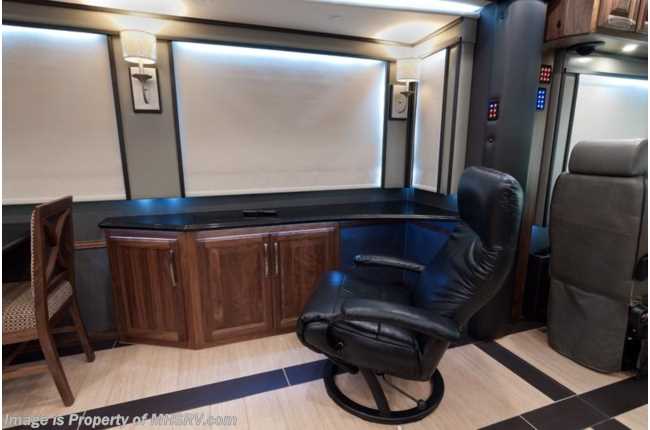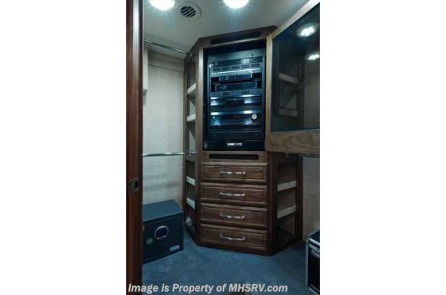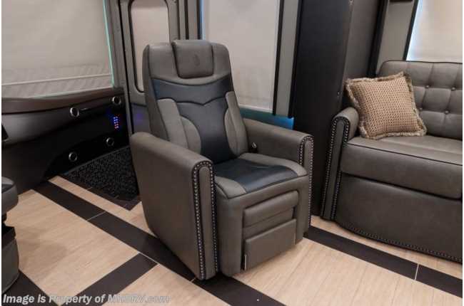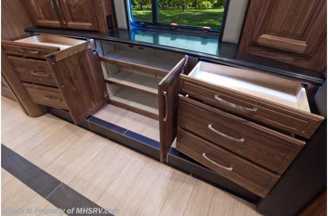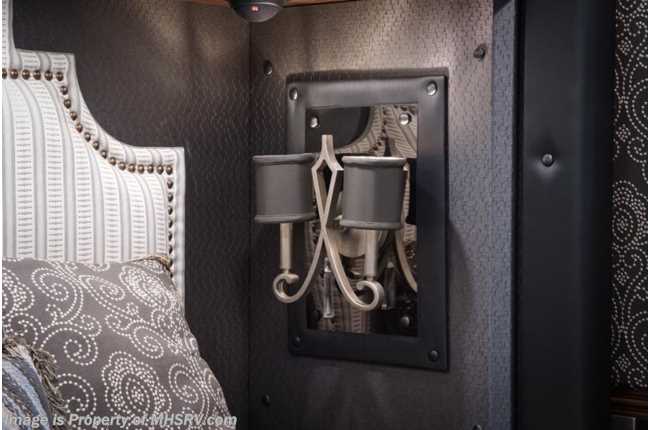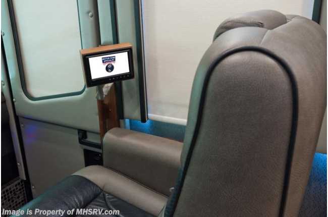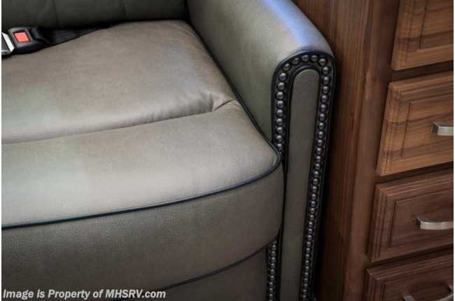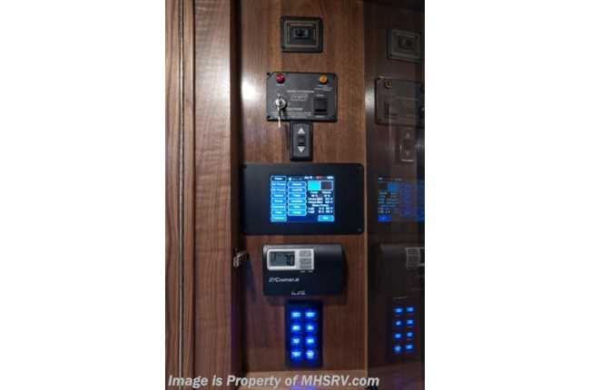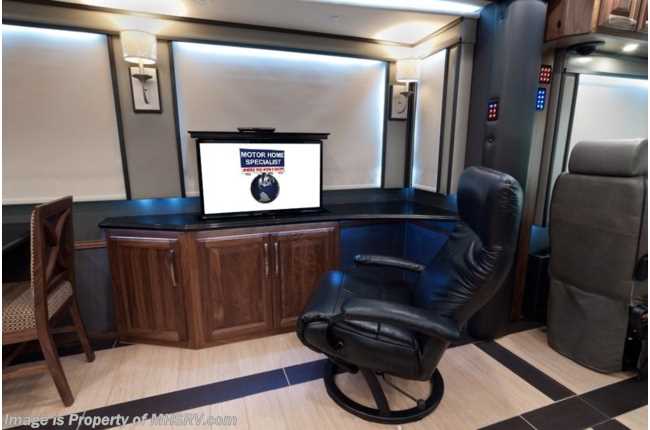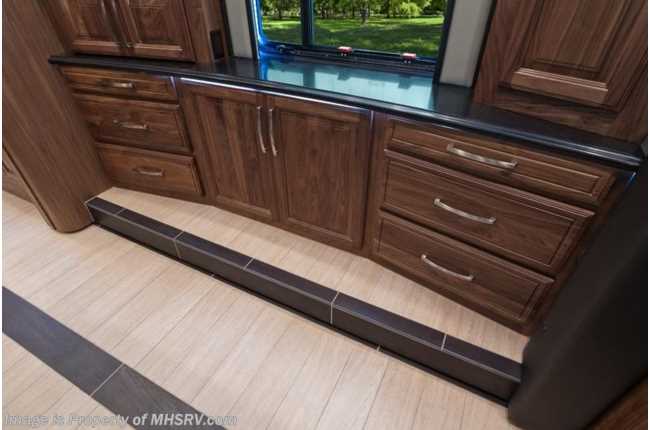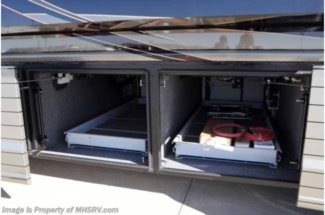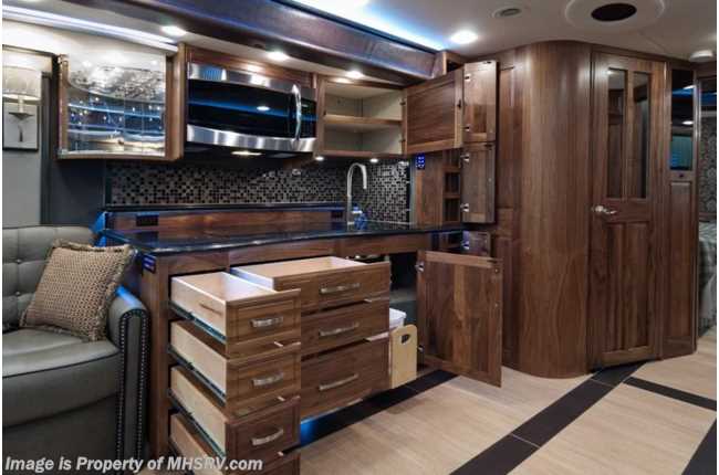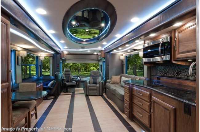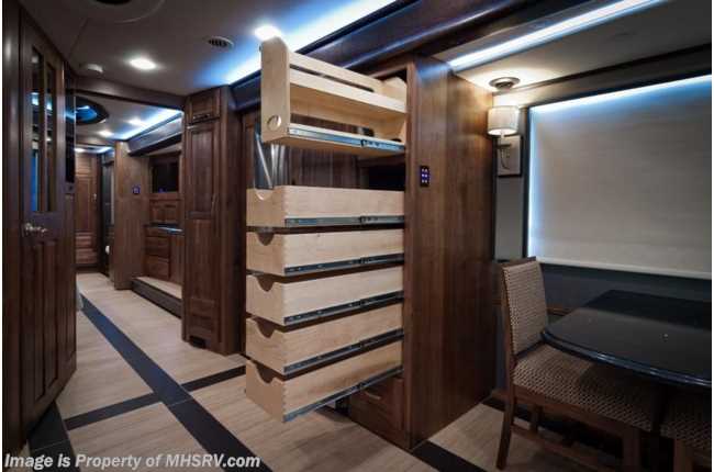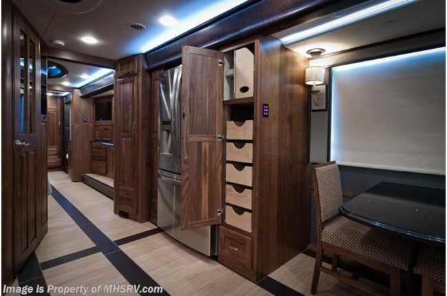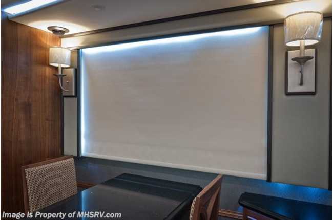 Additional Features Include: • ABS anti-lock braking system w/automatic slack adjusters • Air disc brakes on all wheels • Air quick connect in storage bay • Alcoa aluminum wheels w/ Dura-Bright protection • Allison Transmission with Retarder • Alternator - 320-amp • Automatic traction control (ATC) • Auxiliary 12v air compressor • Chassis – TravelRide II by Foretravel • All air ride with: • 4 outboard-mounted air bags (drive axle) • 2 air bags (IFS front axle) • 2 air bags (tag axle) • Front axle - IFS (independent front suspension) • HWH - computerized air leveling system • HWH - active air system • Receiver hitch - 20000 lb. rated • Michelin Tires: 365/70R22.5 Front-315/80R22.5 Rear • 2 Roof-mounted electric patio awnings • Awning shells • 2 Sliding cargo trays • 4 Docking lights with switch in dash & bedroom • Dual-pane tinted & insulated windows • Easy view one-piece windshield • Electric dump valves • Electric entry step (Executive) • Electric utility reels - water & power • Fiberglass roof & sub floor (one-piece) • Flush kit • Fog lights • Fuel fill - on both sides of coach • Gray water bypass for holding tank • Heated/remote triple head chrome mirrors w/LED turn signals • Lighted entry door w/ assist handle/ keypad/doorbell • LED Marker lights • Paint protection below windshield • Full body paint w/ clear coat finish • Parallel storage doors • Porch light • Remote storage door locks • Roof AC drains • Stainless steel lined utility bay • TV antenna - electric with booster • TV outlet and 12v outlet in storage bay • Utility Station • Xenon low beam headlights • 12 volt accessory receptacle • Battery boost switch • Motorized back-up camera with control at dash • Mirror mount cameras w/ color back-up monitor • Hand held CB at dash • Compass & outdoor temperature • Villa residential co-pilot seat 6 way power w/footrest & headrest • Dash AC controls for co-pilot • Generator auto start/stop • GPS/AM/FM/CD in dash (w/ sat. radio) • Passenger satellite/GPS monitor • MP3 input at dash • Throttle & brake power adjust pedals • Knoedler air ride pilot seat • Silverleaf digital glass dash • Power tilt & telescoping steering wheel • Wood grain Smart Wheel steering wheel • Electric Windshield / privacy shade & sunblock • Built in alarm clock in bedroom • Component audio & digital video cables • 2-burner electric cook top • Home theater speaker system in LR • DVD - Blue-ray - high def • Interior LED Lighting • Inverter/power monitor panel in living room area • LED Lighting accent under counters & window trim • Microwave • 120v electric refrigerator w/ice & water in door • In motion satellite system w/ HD DVR receiver • 2nd HD satellite receiver • Silverleaf Total Coach monitor • Remote tire pressure sensors • TV antenna with booster • Washer/dryer connections • Powered step-well cover with two switch locations • China toilet • Designer window treatment w/ electric day/night shades • Electric exhaust fan in bath & toilet room w/auto rain sensor • Drinking water & ice maker water filter • Electric Floor Heat (with approved flooring) • Multiplex lighting system • Queen bed (60” x 77”) (66” x 77” floor plan dependent) • Slide-out rooms flush w/ sidewalls when retracted • Slide-out rooms pneumatic sealed • Natural Quartz countertops • Stainless steel kitchen sink w/covers • Tile floor (LR/kit/bath/D & P area) • Built in vacuum • Handcrafted cherry/walnut/maple wood cabinetry • Built to RVIA specifications • Carbon monoxide detector • Daytime running lights • Lighted entry-door assist handle • Electronic Safe • Security system • Smoke detector • 12 volt battery disconnect • 20 kw diesel generator • 2 – 2800 w inverter/charger • 50 amp shoreline connection • Air conditioning & heating with hidden returns • Ducted AC with 3 roof airs (40-42) • Ducted AC with 4 roof airs (45) • Auto temp. start for generator • Electrical surge-suppression system • Heat pumps on roof AC’s • Hydronic heating • Low-battery generator auto-start