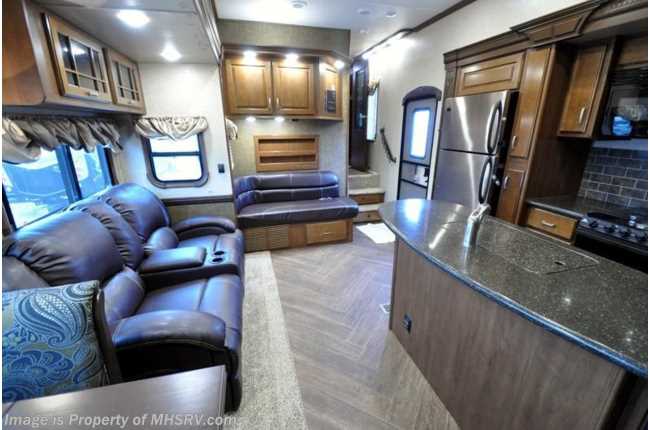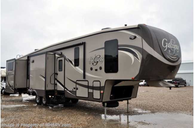 /TX 12/30/16 Used Heartland RV for Sale- 2015 Heartland Gateway 3650BH is approximately 41 feet 4 inches in length with 5 slides, power patio awning, gas/electric water heater, pass-thru storage, aluminum wheels, exterior grill, exterior shower, exterior entertainment center, inverter, night shades, kitchen island, 3 burner range with oven, sink covers, solid surface counter, glass door shower, bath & ½, king bed, bunk beds, 2 ducted A/Cs and much more. For additional information and photos please visit Motor Home Specialist at www.MHSRV.com or call 800-335-6054.