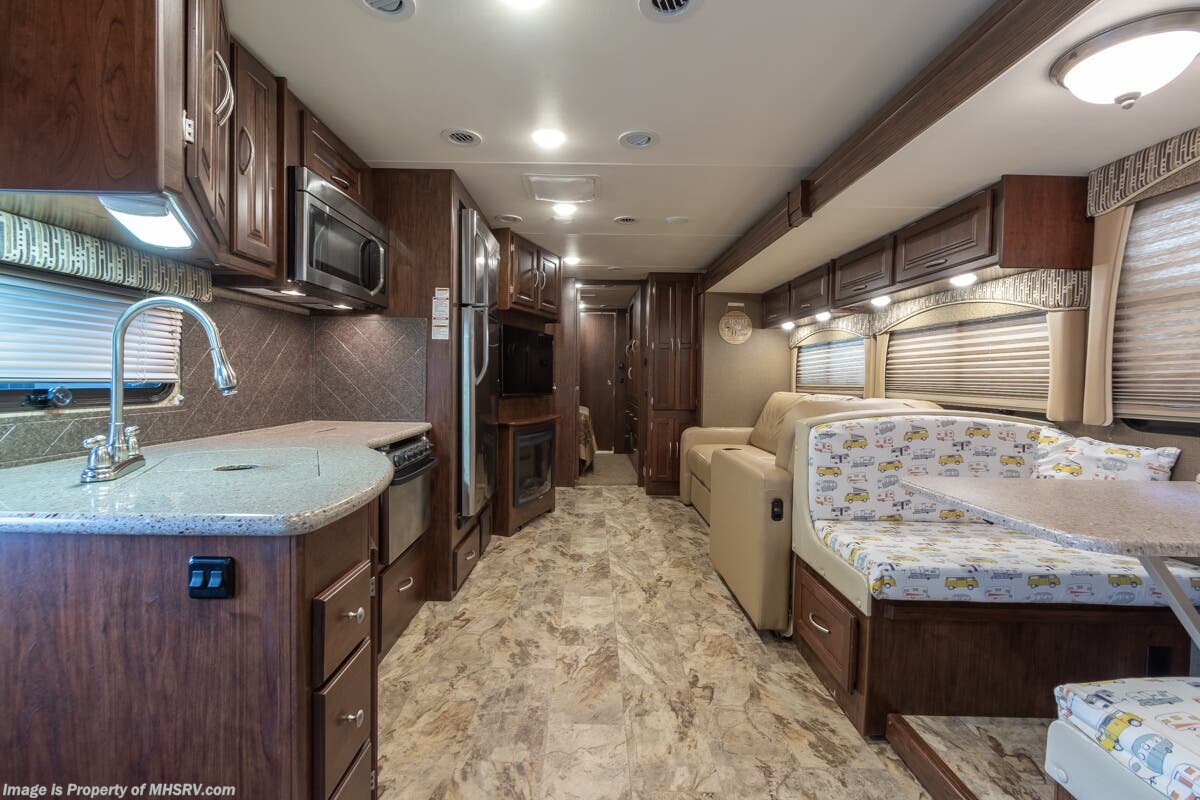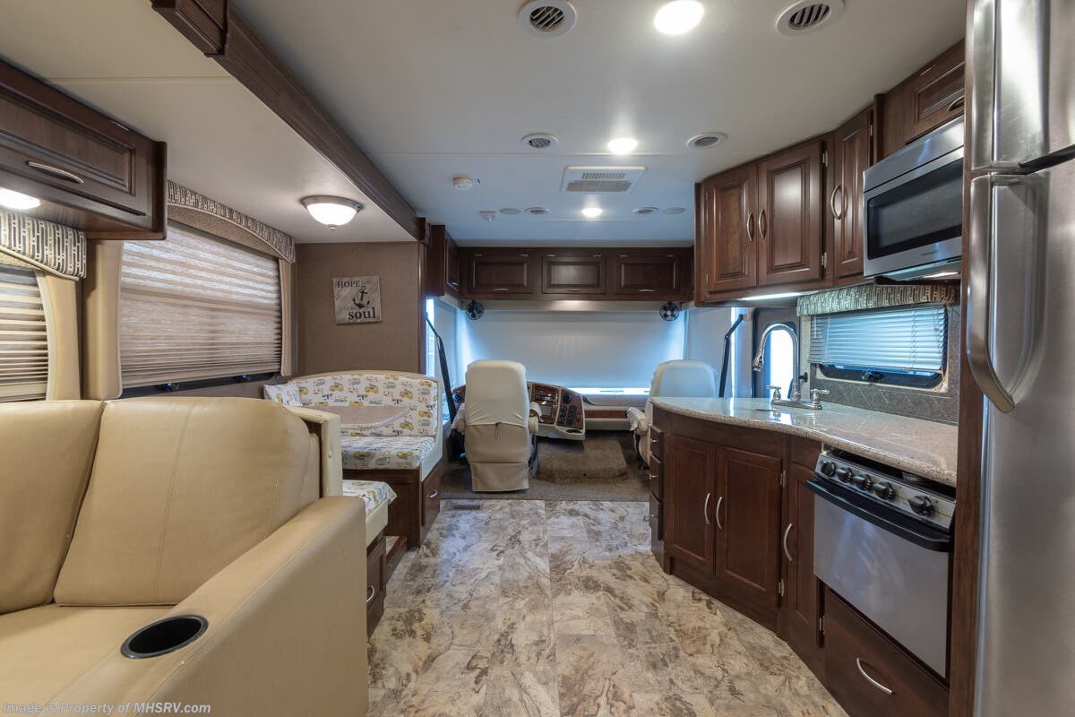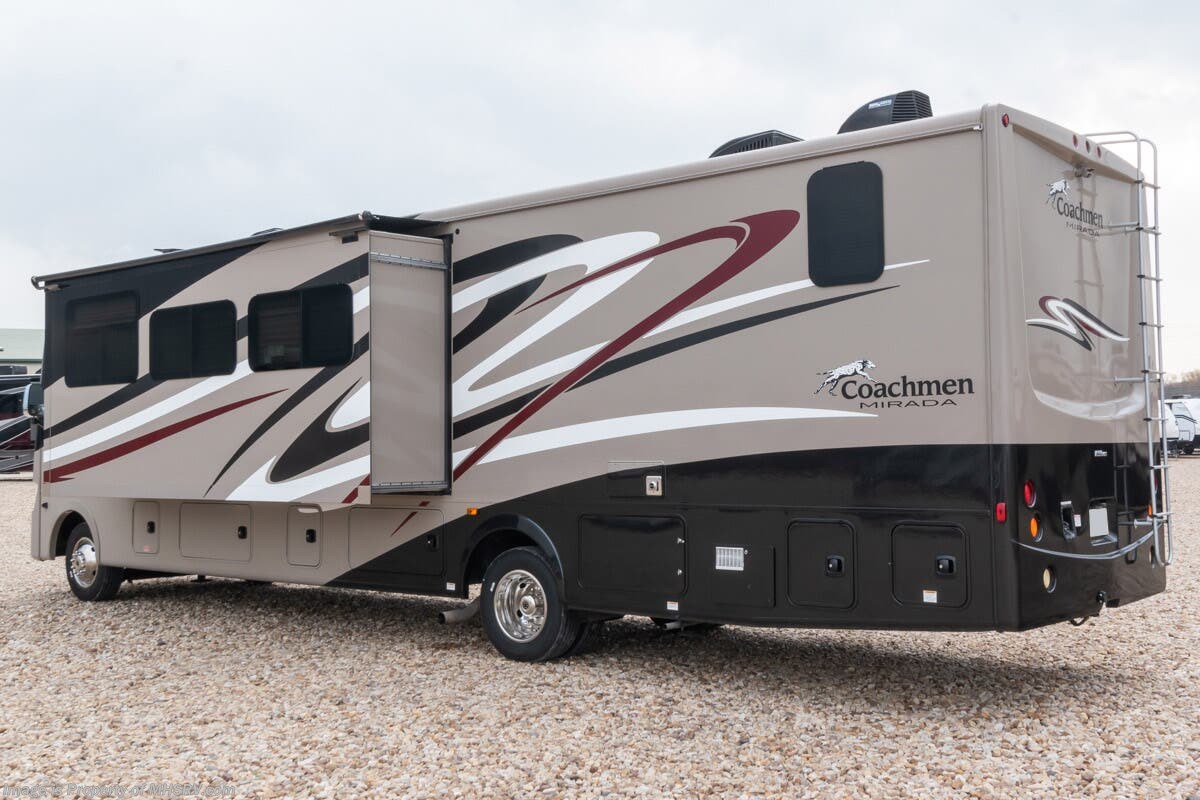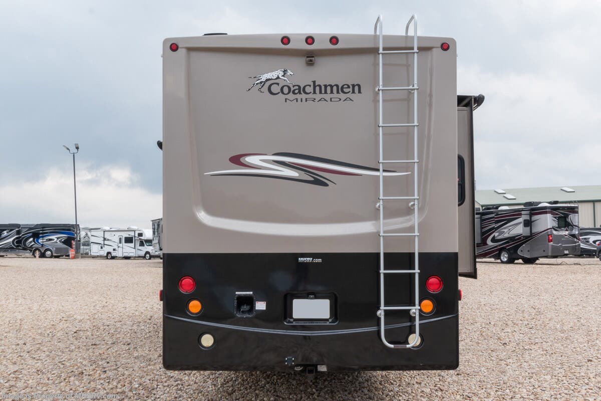 1/16/23 ***Consignment*** Used Coachmen RV for sale – 2016 Coachmen Mirada 35LS Bath & ½ is approximately 36 feet 10 inches with 2 slides, 22,761 miles and features automatic leveling, 3 camera monitoring, 2 ducted A/Cs, Onan generator, Ford engine, Ford chassis, tilt steering, cruise control, electric/gas water heater, power patio awning, pass-thru storage with swing doors, black tank rinsing system, water filtration, 50AMP, exterior shower, inverter, booth converts to sleeper, fireplace, day/night shades, solid surface kitchen counters with sink covers, residential refrigerator with ice maker, 3 burner with oven, glass shower door, 3 flat screen TVs and more. For additional information and photos, please visit Motor Home Specialist at www.MHSRV.com or call 800-335-6054.