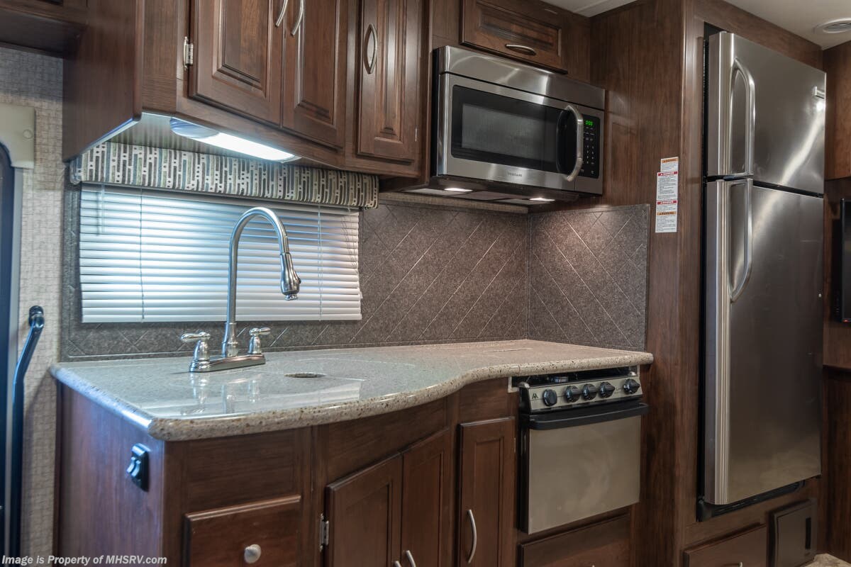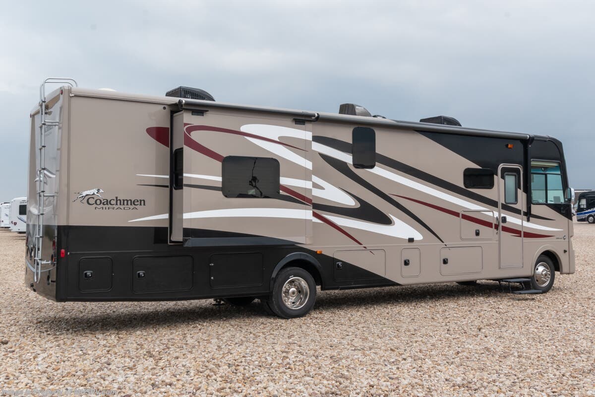 Used 2016 Coachmen Mirada35LS Bath & 1/2 W/ Dual A/C, Res. Fridge, Oven, Fireplace, Auto Leveling, Ext. Shower & More