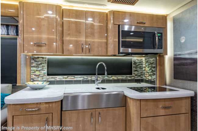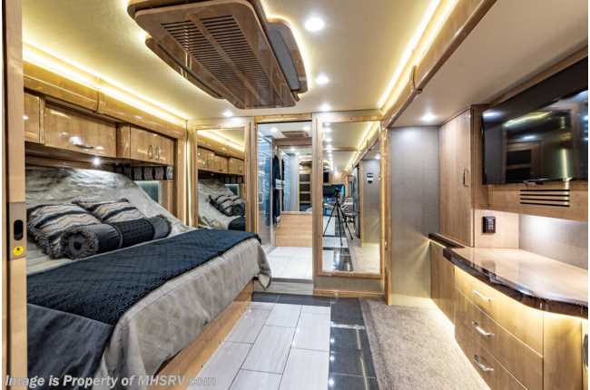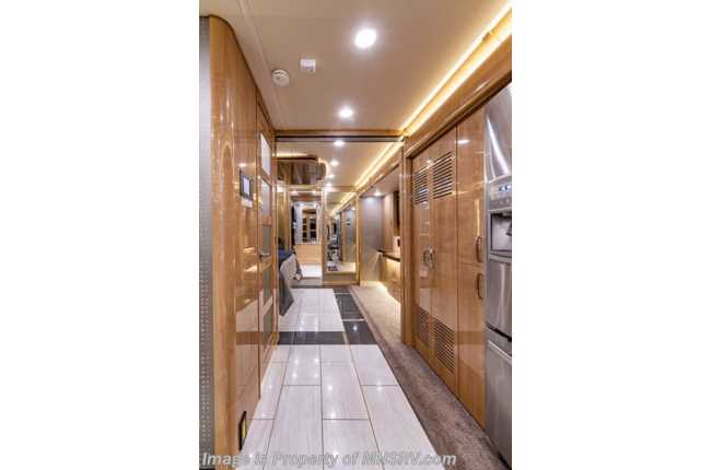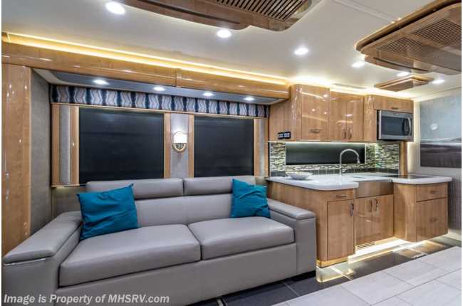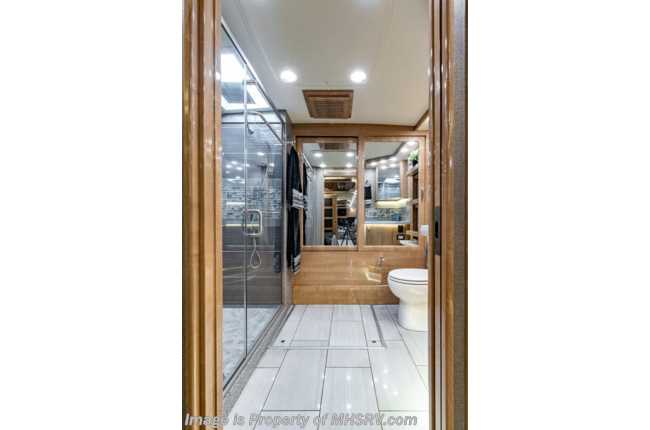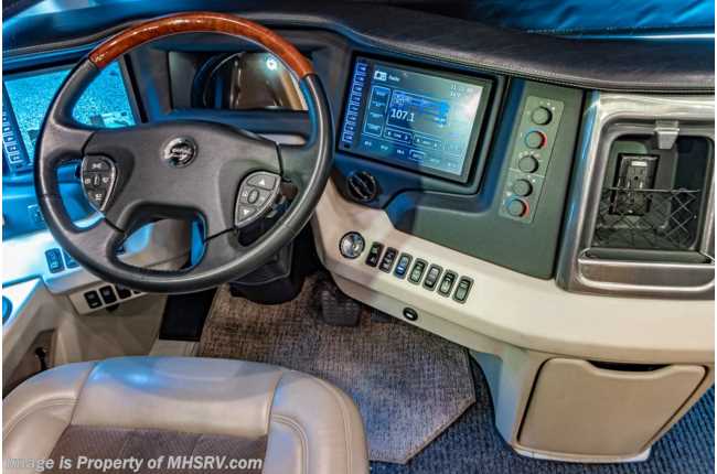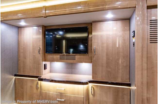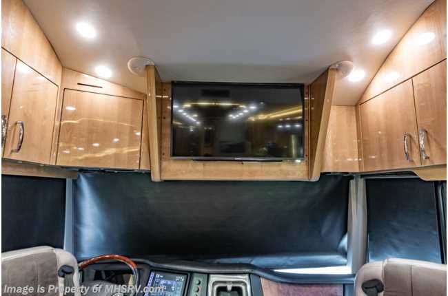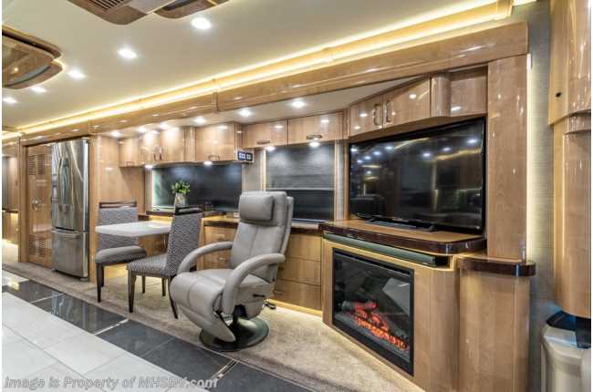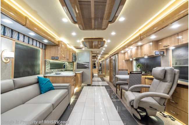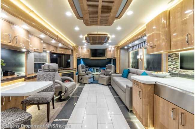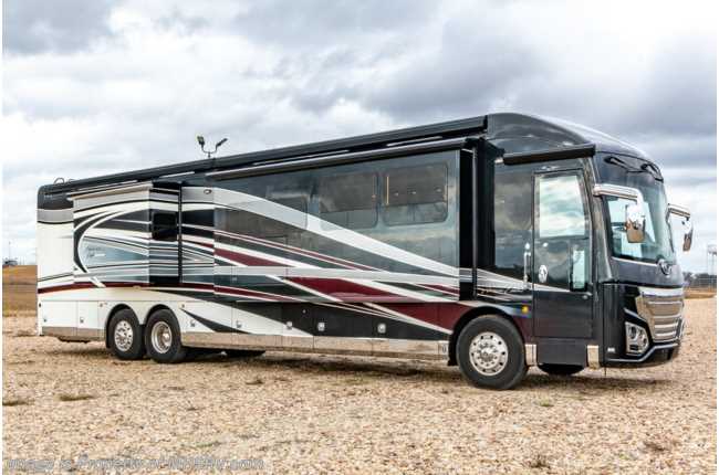 3/28/22 Used American Coach for sale – 2017 American Coach Eagle 45C Bath & ½ is approximately 45 feet in length with 3 slides, 37,282 miles and features aluminum wheels, automatic leveling, 3 camera monitoring, 3 ducted A/Cs with heat pumps, Onan diesel generator, Cummins diesel engine, Freightliner chassis, tilt & telescoping smart wheel, secondary engine brake, tire monitoring, power pedals, driver memory seat, driver door, GPS, keyless entry, power windows, power door locks, cruise control, aqua-hot, power patio awning, power door awning, power window awning, 3 power cargo trays, pass-thru storage with side swing doors, LED running lights, docking lights, water filtration system, power water hose reel, 50AMP with power reel, exterior shower, exterior entertainment, clear paint mask, fiberglass roof, airhorns, solar, inverter, ceramic tile, all electric coach, central vacuum, heated floors, 7 foot ceilings, dual pane windows, fireplace, multi-plex lighting system, hardwood cabinets, power roof vents, day/night shades, solid surface kitchen counters with sink covers, convection microwave, residential refrigerator with ice maker, electric 2 burner range, glass shower door with seat, stackable washer & dryer, king bed, 3 flat screen TVs and much more. For additional information and photos, please visit Motor Home Specialist at www.MHSRV.com or call 800-335-6054.