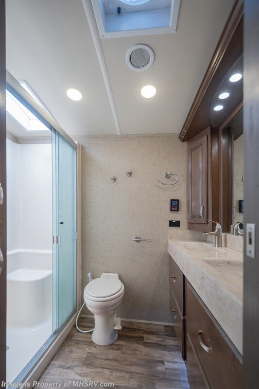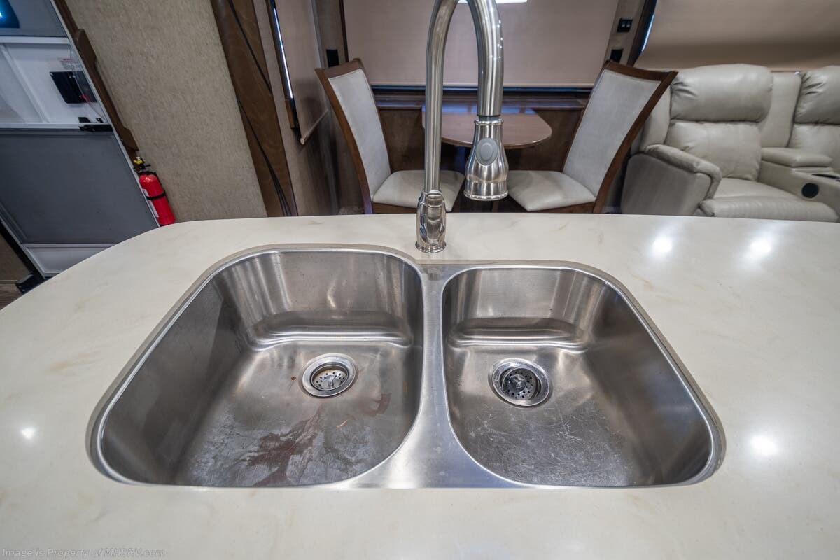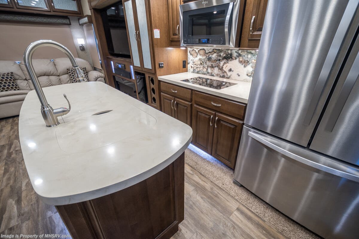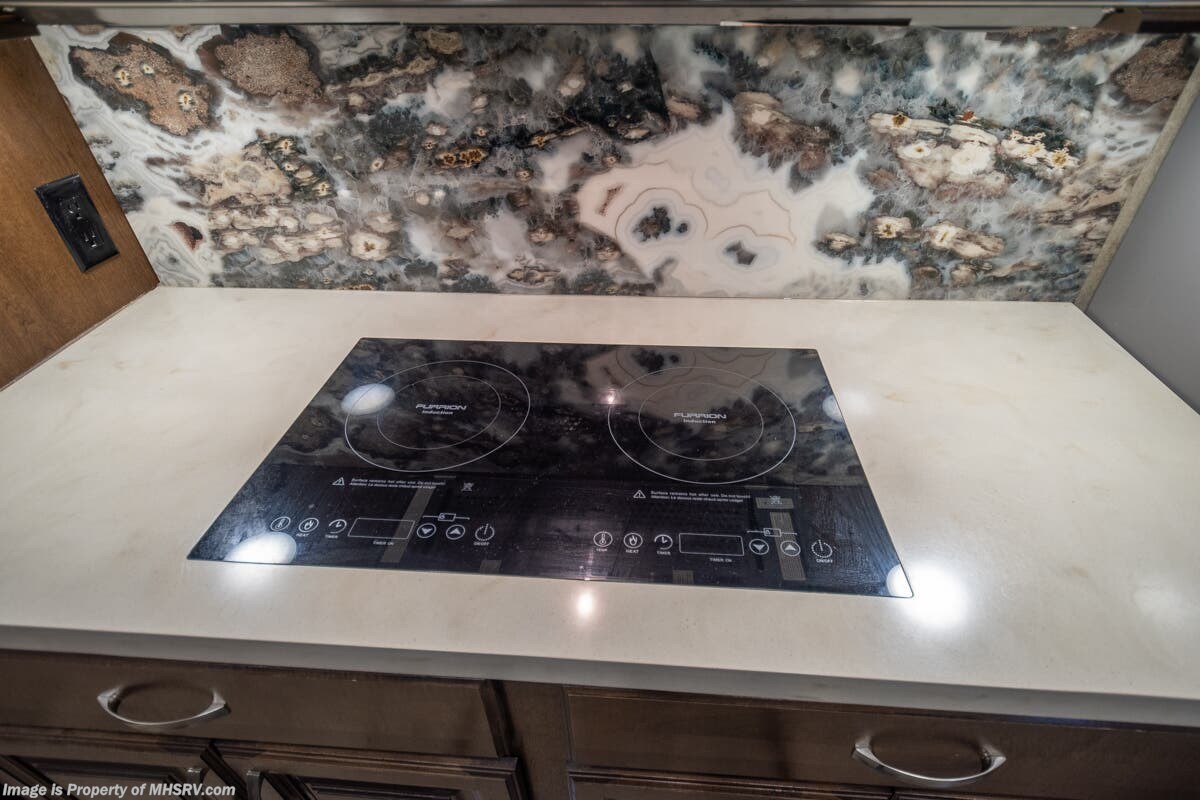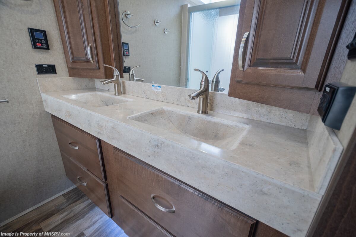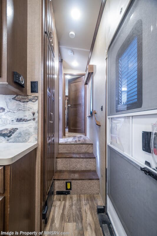 5/23/20 Used Forest River RV for Sale- 2018 Forest River Cedar Creek Champagne 38EL with 3 slides. This RV is approximately 41 feet 7 inches in length and features an automatic leveling system, aluminum wheels, 2 ducted A/Cs, keyless entry, water heater, power patio awning, LED running lights, black tank rinsing system, water filtration system, 50 amp power cord reel, inverter, central vacuum, dual pane windows, fireplace, hardwood cabinets, power roof vent, ceiling fan, solar/black-out shades, solid surface kitchen counter with sink cover, dishwasher, convection microwave, 2 burner electric flat top range, residential refrigerator, glass door shower with seat, king size bed, theater seats, 2 flat panel TVs and much more. For additional information and photos please visit Motor Home Specialist at www.MHSRV.com or call 800-335-6054.