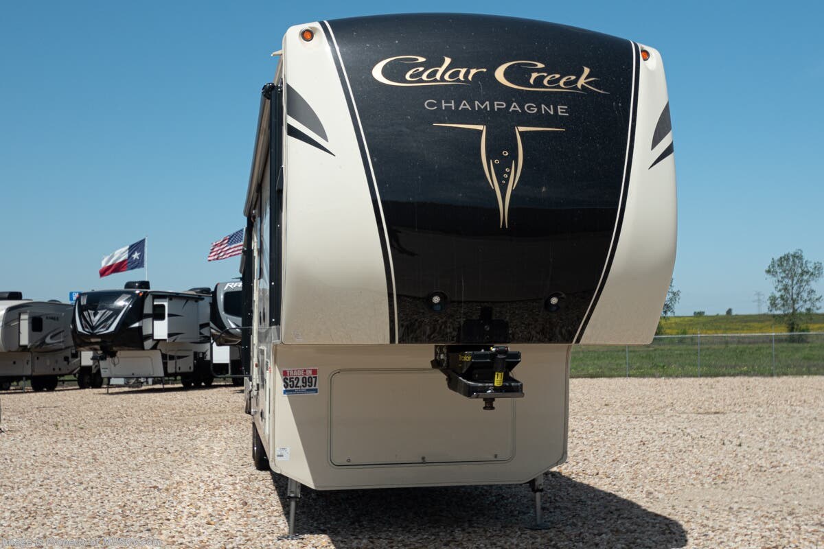 Used 2018 Forest River Cedar Creek Champagne Edition38EL W/ Theater Seats, King, Dishwasher, Auto Level