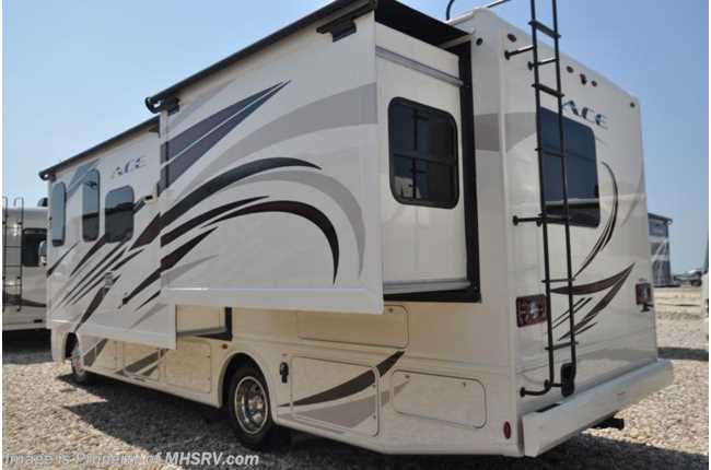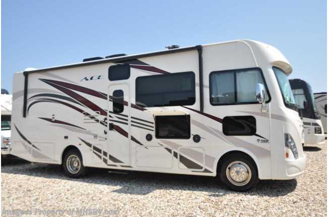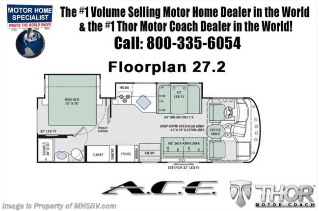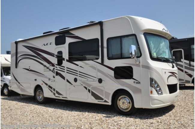 MSRP $117,300. New 2018 Thor Motor Coach A.C.E. Model 27.2 is approximately 28 feet 9 inches in length featuring a king bed, 2 slides, modern decor updates, Ford V-10 engine, hydraulic leveling jacks, LED running & marker lights and the beautiful HD-Max exterior. The A.C.E. is the class A & C Evolution. It Combines many of the most popular features of a class A motor home and a class C motor home to make something truly unique to the RV industry. The A.C.E. also features frameless windows, drop down overhead loft, bedroom TV, exterior entertainment center, attic fans, black tank flush, second auxiliary battery, power side mirrors with integrated side view cameras, a mud-room, roof ladder, generator, electric patio awning with integrated LED lights, AM/FM/CD, stainless steel wheel liners, hitch, valve stem extenders, refrigerator, microwave, water heater, one-piece windshield with "20/20 vision" front cap that helps eliminate heat and sunlight from getting into the drivers vision, cockpit mirrors, slide-out workstation in the dash, floor level cockpit window for better visibility while turning and a "below floor" furnace and water heater helping keep the noise to an absolute minimum and the exhaust away from the kids and pets. For more complete details on this unit and our entire inventory including brochures, window sticker, videos, photos, reviews & testimonials as well as additional information about Motor Home Specialist and our manufacturers please visit us at MHSRV.com or call 800-335-6054. At Motor Home Specialist, we DO NOT charge any prep or orientation fees like you will find at other dealerships. All sale prices include a 200-point inspection, interior & exterior wash, detail service and a fully automated high-pressure rain booth test and coach wash that is a standout service unlike that of any other in the industry. You will also receive a thorough coach orientation with an MHSRV technician, an RV Starter's kit, a night stay in our delivery park featuring landscaped and covered pads with full hook-ups and much more! Read Thousands upon Thousands of 5-Star Reviews at MHSRV.com and See What They Had to Say About Their Experience at Motor Home Specialist. WHY PAY MORE?... WHY SETTLE FOR LESS?