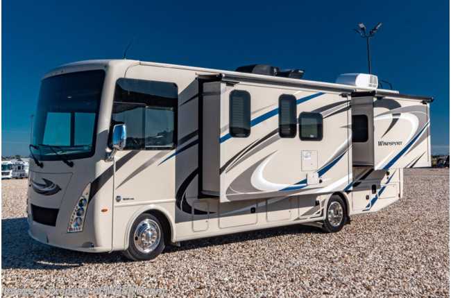 3/28/22 Used Thor Motor Coach for sale – 2018 Thor Windsport 27B is approximately 28 feet in length with 2 slides, 23,748 miles and features automatic leveling, 3 camera monitoring, 2 ducted A/Cs, Onan generator, Ford engine, Ford chassis, tilt steering wheel, power visor, cruise control, electric/gas water heater, power patio awning, pass-thru storage, LED running lights, black tank rinsing system, exterior shower, exterior entertainment, inverter, booth converts to sleeper, 7 foot ceilings, hardwood cabinets, 3 burner range with oven, glass shower door, theater seats, power cab over bunk, 3 flat screen TVs and much more. For additional information and photos, please visit Motor Home Specialist at www.MHSRV.com or call 800-335-6054.