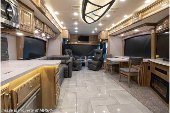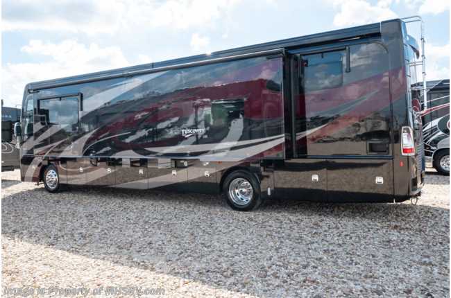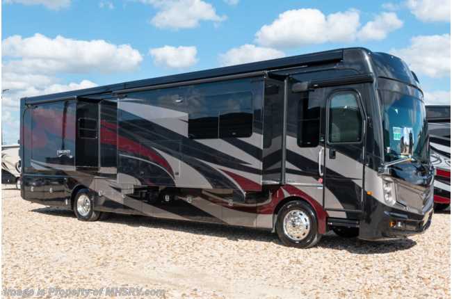 9/19/19 MSRP $356,430. New 2019 Fleetwood Discovery LXE Model 40D Bath & 1/2 with 3 slides including a full wall slide is approximately 41 feet 4 inches in length featuring a large TV in the living area, 380HP Cummins diesel, Freightliner® XCM Series Chassis, an 8KW diesel generator and an Aqua Hot. New features for 2019 include new interior and exterior stylings & décor, front zone heated floor, recessed induction cooktop, 32” landscape fireplace, upgraded bunk mattress, under chassis lighting, large exterior TV made standard, LED exterior lights, 15,000 BTU A/Cs and much more. Options include the second full bay 54" slide-out tray, window awning package and the technology package. This amazing diesel pusher RV features a 3rd roof A/C, solar panel, integrated Girard patio awning, Firefly Integrations Electric Control System, residential refrigerator with 2,800W inverter, dishwasher, flush mount induction cooktop, residential polished porcelain tile throughout, front zone heated tile flooring, solid hardwood cabinetry throughout, soft-touch ceiling with quiet cool A/C interface, in-dash 10” touch screen with navigation, soundbar, six-way heated power driver & passenger cockpit seating, Villa comfort-fit residential style furniture, molded fiberglass roof and much more. For more complete details on this unit and our entire inventory including brochures, window sticker, videos, photos, reviews & testimonials as well as additional information about Motor Home Specialist and our manufacturers please visit us at MHSRV.com or call 800-335-6054. At Motor Home Specialist, we DO NOT charge any prep or orientation fees like you will find at other dealerships. All sale prices include a 200-point inspection, interior & exterior wash, detail service and a fully automated high-pressure rain booth test and coach wash that is a standout service unlike that of any other in the industry. You will also receive a thorough coach orientation with an MHSRV technician, an RV Starter's kit, a night stay in our delivery park featuring landscaped and covered pads with full hook-ups and much more! Read Thousands upon Thousands of 5-Star Reviews at MHSRV.com and See What They Had to Say About Their Experience at Motor Home Specialist. WHY PAY MORE?... WHY SETTLE FOR LESS?
