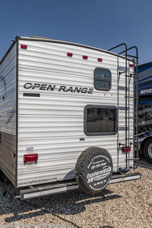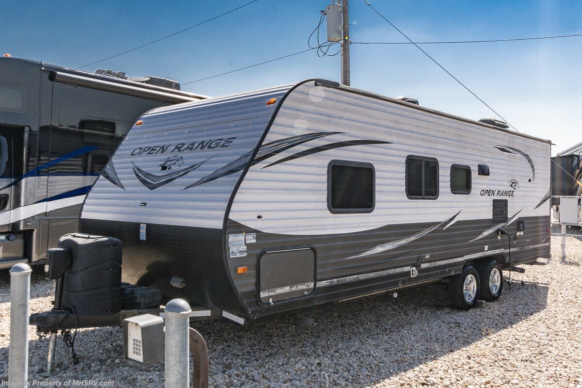 9-15-2023 Used Highland Ridge travel trailer for sale – 2019 Highland Ridge Open Range 26BH Bunk Model is approximately 26 feet in length and features aluminum wheels, ducted A/C, power patio awning, pass-thru storage, LED running lights, exterior shower, clear paint mask, 7 foot ceilings, black out shades, 3 burner range with oven, flat screen TV and much more. For additional information and photos, please visit Motor Home Specialist at www.MHSRV.com or call 800-335-6054.