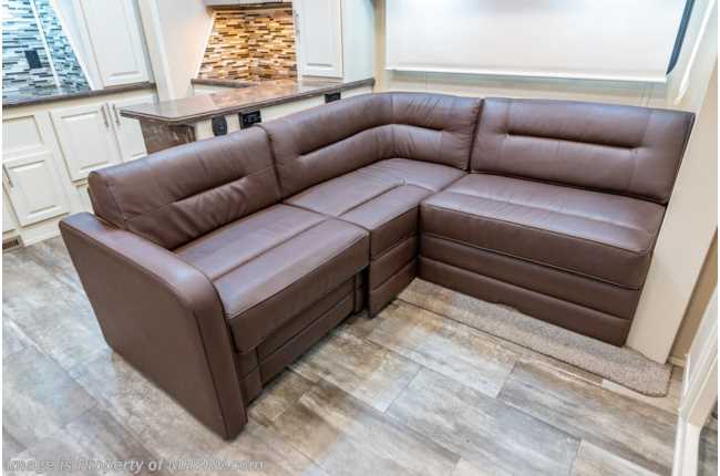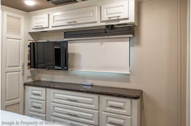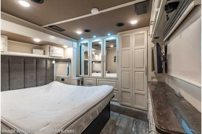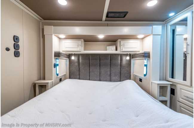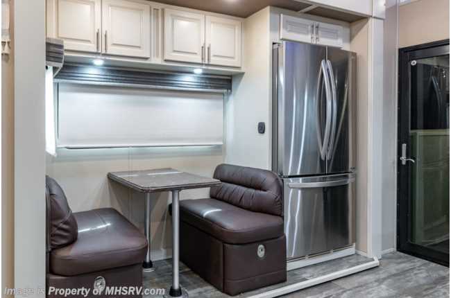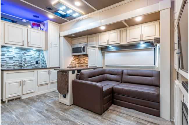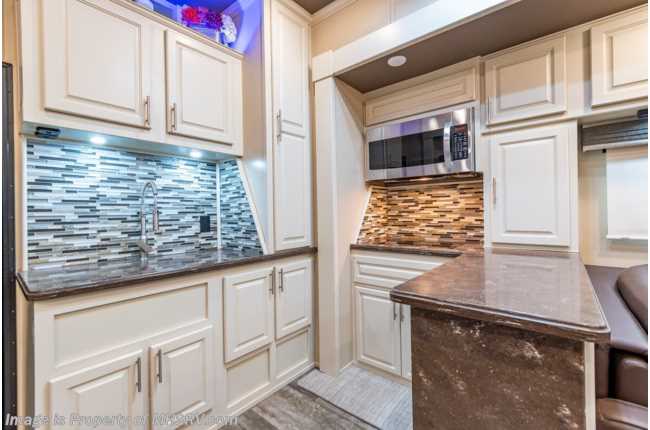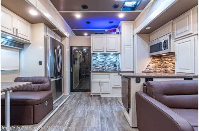 picked up 5-12-22 ***Consignment*** Used The RV Factory fifth wheel for sale – 2019 RV Factory LUXE 44FB Bath & ½ Toy Hauler is approximately 45 feet 6 inches in length with 3 slides and features aluminum wheels, automatic leveling, 3 ducted A/Cs, Onan generator, keyless entry, aqua-go heating system, power patio awning, pass-thru storage with side swing doors, LED running lights, black tank rinsing system, water filtration system, exterior shower, exterior entertainment, inverter, all electric coach, booth converts to sleeper, fireplace, power roof vents, black our shades, solid surface kitchen counters with sink covers, residential refrigerator with ice maker, electric 2 burner range, glass shower door, king bed, 3 flat screen TVs and much more. For additional information and photos, please visit Motor Home Specialist at www.MHSRV.com or call 800-335-6054.