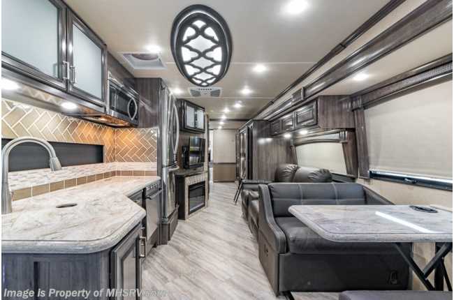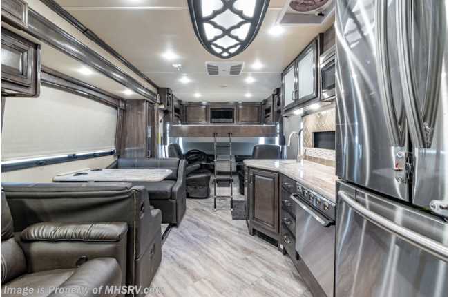 2/1/22 ***Consignment*** Used Fleetwood RV for sale – 2020 Fleetwood Southwind 37F 2 Full Bath, Bunk Model is approximately 38 feet 9 inches with 2 slides, 1,534 miles and features aluminum wheels, automatic leveling, 3 camera monitoring, 2 ducted A/Cs with heat pumps, Onan generator, Ford engine, Ford chassis, tilt steering wheel, cruise control, power patio awning, pass-thru storage with side swing doors, LED running lights, black tank rinsing system, water filtration system, 50Amp with power reel, exterior shower, exterior entertainment, clear paint mask, inverter, booth converts to sleeper, dual pane windows, fireplace, power roof vents, solar/black out shades, solid surface kitchen counters with sink covers, convection microwave, residential refrigerator with ice maker, 3 burner range with oven, glass shower door, combination washer & dryer, power cab over bunk, theater seats, king bed, bunk TV, 4 flat screen TVs and much more. For additional information and photos, please visit Motor Home Specialist at www.MHSRV.com or call 800-335-6054.