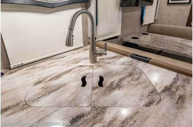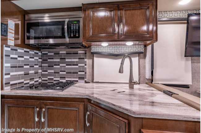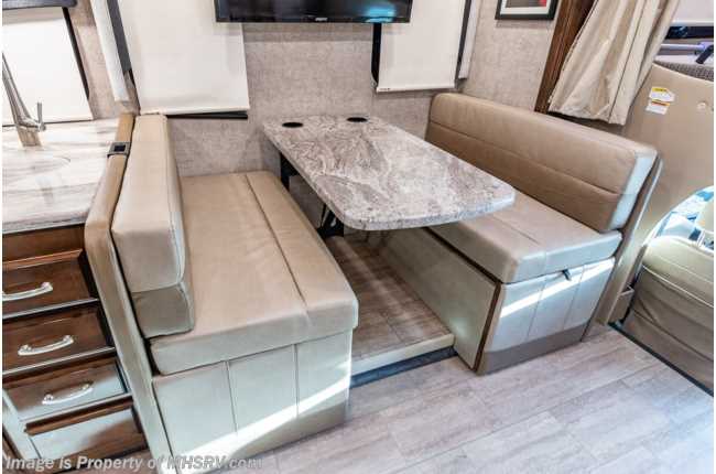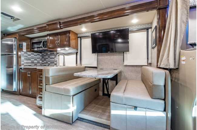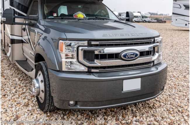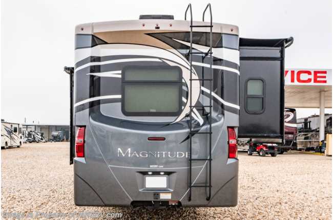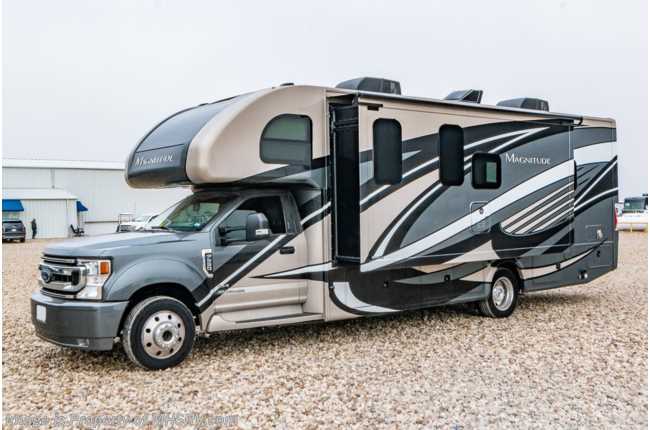 3/28/22 ***Consignment*** Used Thor Motor Coach for sale – 2020 Thor Magnitude XG 32 is approximately 33 feet 6 inches with 2 slides, 6,365 miles and features aluminum wheels, hydraulic leveling, 3 camera monitoring, 2 ducted A/Cs, Onan diesel generator, Ford engine, Ford chassis, tilt & telescoping smart wheel, GPS, keyless entry, power windows, power door locks, cruise control, power patio awning, pass-thru storage with side swing doors, LED running lights, black tank rinsing system, water filtration system, exterior shower, exterior entertainment, clear paint mask, inverter, booth converts to sleeper, multiplex lighting system, solid surface kitchen counters with sink covers, residential refrigerator with ice maker, convection microwave, electric/gas 3 burner range, glass shower door, theater seats, cab over bunk, 3 flat screen TVs and much more. For additional information and photos, please visit Motor Home Specialist at www.MHSRV.com or call 800-335-6054.