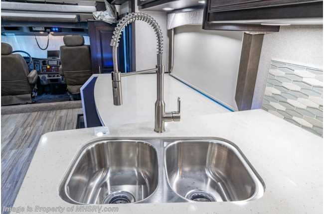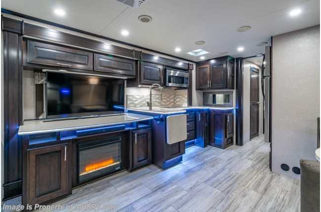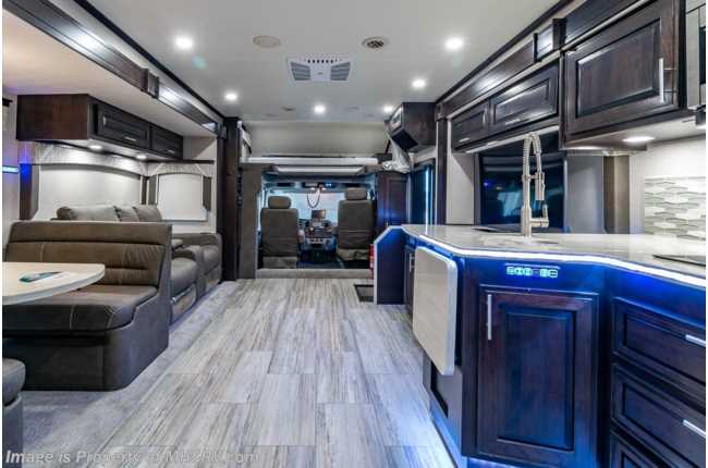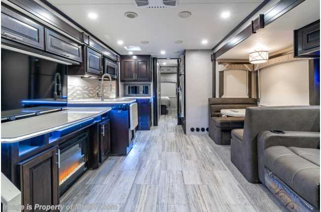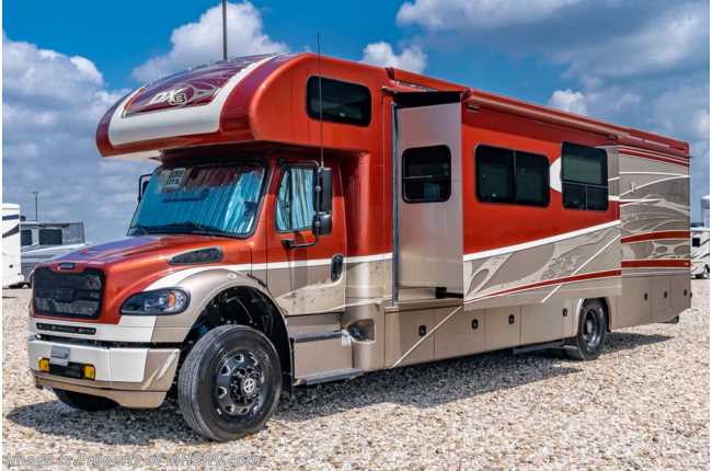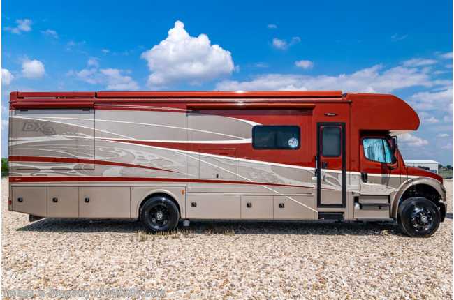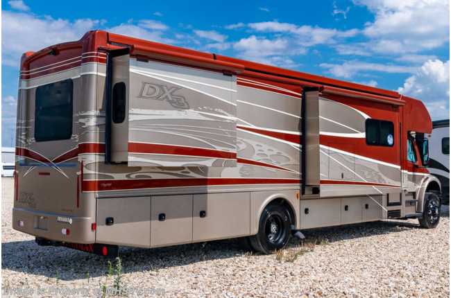 9/20/21 MSRP $358,287. 2021 DynaMax DX3 model 37TS with 3 slides. Perhaps the most luxurious yet affordable Super C motor home on the market! Features include the exclusive D-Max design which maximizes structural integrity & stability, Bilstein oversized shock absorbers, diesel Aqua Hot system, Kenwood dash infotainment system, brake controller, newly designed aerodynamic fiberglass front & rear caps, vacuum-Laminated 2" insulated floor, rear LED docking lights, brake controller, one-piece fiberglass roof, Roto-Formed ribbed storage compartments, side-hinged aluminum compartment doors with paddle latches, integrated Carefree Mirage roof-mounted awnings with LED lighting, heavy duty electric triple series 25 entry step, clear vision frameless windows, Sani-Con emptying system with macerating pump, decorative crown molding, MCD day/night shades, solid surface countertops, dual A/Cs with heat pumps, 8KW Onan diesel generator, 3,000 watt inverter with low voltage automatic start and 2 upgraded 4D AGM house batteries. This Model is powered by the 8.9L Cummins 350HP diesel engine with 1,000 lbs. of torque & massive 33,000 lb. Freightliner M-2 chassis with 20,000 lb. hitch and 4 point fully automatic hydraulic leveling jacks. This RV also features the Black Out Package which includes black side mirrors, rock guard, wheels, headlight bezels, exterior grab handle trim, as well as custom C9 grill and vents. Additional options include the beautiful full body exterior 4-Color package, tire pressure monitoring system, cab over bed, washer/dryer, all electric package, powered reclining theater seats IPO sofa, entertainment center with 50" LED TV and fireplace IPO loveseat and cab over TV, Innomax Adjustable Comfort digital smart bed, Winegard Trav'ler stationary triple LNB satellite dish IPO in-motion, JBL premium cab sound system, Mobile Eye collision avoidance system, in-dash Garmin RV navigation system, and two solar panels with controller. The DX3 also features an exterior entertainment center, Jacobs C-Brake with low/off/high dash switch, Allison transmission, air brakes with 4 wheel ABS, twin aluminum fuel tanks, electric power windows, remote keyless pad at entry door, In-Motion satellite, flush mounted LED ceiling lights, convection microwave, residential refrigerator, touch screen premium AM/FM/CD/DVD radio, color back-up camera and two color side view cameras. For more complete details on this unit and our entire inventory including brochures, window sticker, videos, photos, reviews & testimonials as well as additional information about Motor Home Specialist and our manufacturers please visit us at MHSRV.com or call 800-335-6054. At Motor Home Specialist, we DO NOT charge any prep or orientation fees like you will find at other dealerships. All sale prices include a 200-point inspection, interior & exterior wash, detail service and a fully automated high-pressure rain booth test and coach wash that is a standout service unlike that of any other in the industry. You will also receive a thorough coach orientation with an MHSRV technician, an RV Starter's kit, a night stay in our delivery park featuring landscaped and covered pads with full hook-ups and much more! Read Thousands upon Thousands of 5-Star Reviews at MHSRV.com and See What They Had to Say About Their Experience at Motor Home Specialist. WHY PAY MORE?... WHY SETTLE FOR LESS?