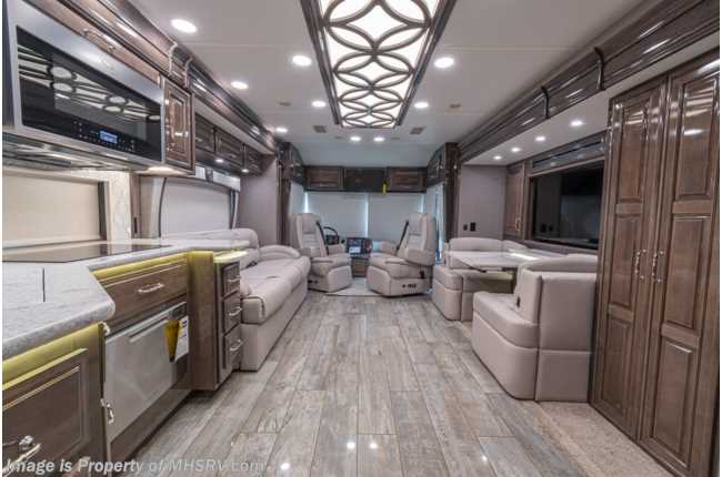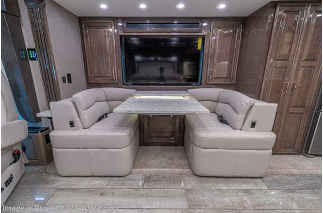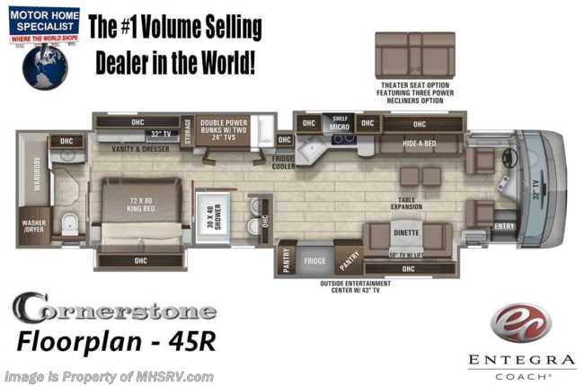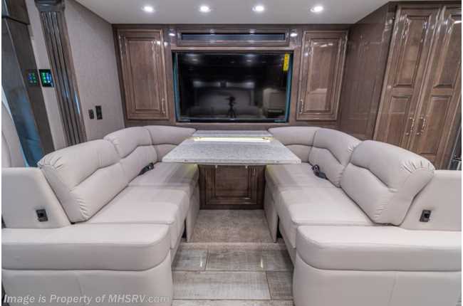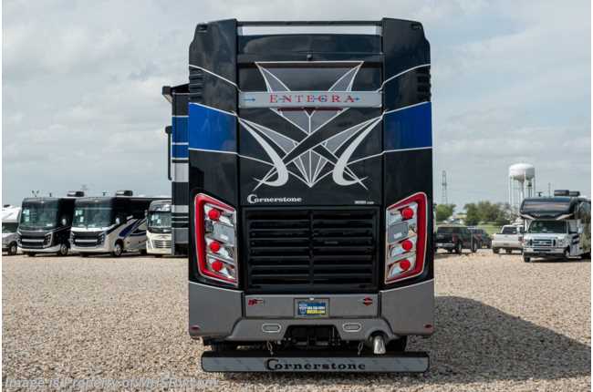 9/20/21 MSRP $764,497. All New 2021 Entegra Cornerstone Model 45R bunk house, bath & 1/2 is approximately 44 feet 11 inches in length and rides on a Spartan K3 tag axle chassis with IFS featuring Entegra’s exclusive X-Bridge framing, powered by a Cummins 15-liter ISX turbocharged 605HP engine 1,950 lb. ft. torque at 1,200 RPM, an Allison 4000 series transmission and is backed by Entegra Coach's superior 2-Year/24K Mile Limited Coach & 5-Year Limited Structural Warranties. Options include the beautiful full body paint & graphics package, upgraded Stonewall interior, Winegard TRAV’LER dish network and solar panels. Entegra made the 2021 Cornerstone even more impressive with an incredible amount of updates including making the WiFi extender a standard feature, a kitchen window with slider and screen, solid pane kitchen window & day/night shades for this window are electrically powered off the Vegatouch® system, power driver’s cockpit window replacing the slider window, removable screen on entry door with a high grade cloth storage bag, added individual shut of valves to centralized water distribution point in wet bay, Aqua View Showermi$er with “GREEN” technology saves fresh water, free-standing dinette chairs now with industry-exclusive swivel seat base for great ergonomic functionality, additional A/C vent in rear wardrobe now on all floorplans, switched to EZ clean stainless 24” Fisher & Paykel® dishwasher drawer with easy access to controls, single bowl Blanco granite kitchen sink which is not only non-porous & hygienic but resistant to stains, scratches and chips, upscale tile on the floor, backsplash and shower high class quartz countertops, Saniflo macerator toilet, replaced the touch lights with the standard LED lights used throughout the rest of the coach and many more updates. For more complete details on this unit and our entire inventory including brochures, window sticker, videos, photos, reviews & testimonials as well as additional information about Motor Home Specialist and our manufacturers please visit us at MHSRV.com or call 800-335-6054. At Motor Home Specialist, we DO NOT charge any prep or orientation fees like you will find at other dealerships. All sale prices include a 200-point inspection, interior & exterior wash, detail service and a fully automated high-pressure rain booth test and coach wash that is a standout service unlike that of any other in the industry. You will also receive a thorough coach orientation with an MHSRV technician, an RV Starter's kit, a night stay in our delivery park featuring landscaped and covered pads with full hook-ups and much more! Read Thousands upon Thousands of 5-Star Reviews at MHSRV.com and See What They Had to Say About Their Experience at Motor Home Specialist. WHY PAY MORE?... WHY SETTLE FOR LESS?