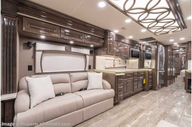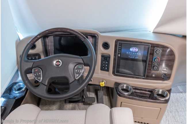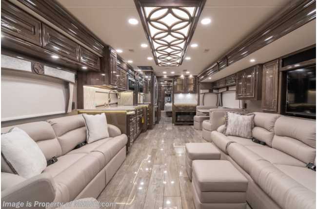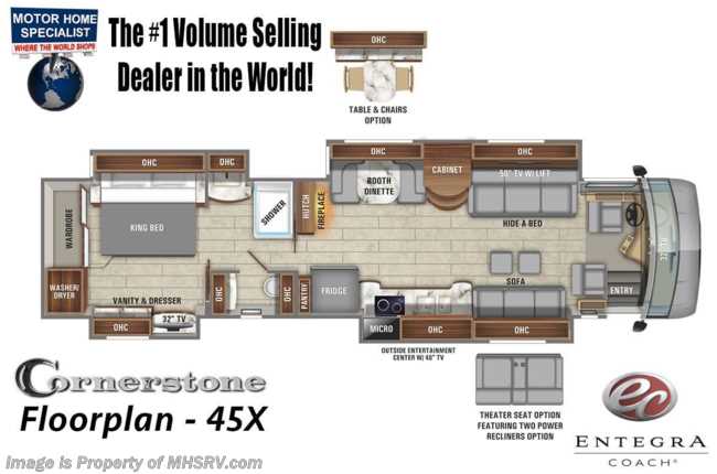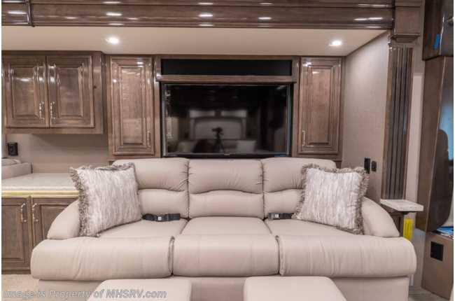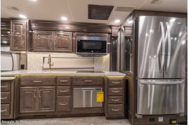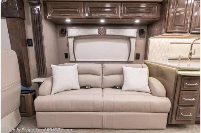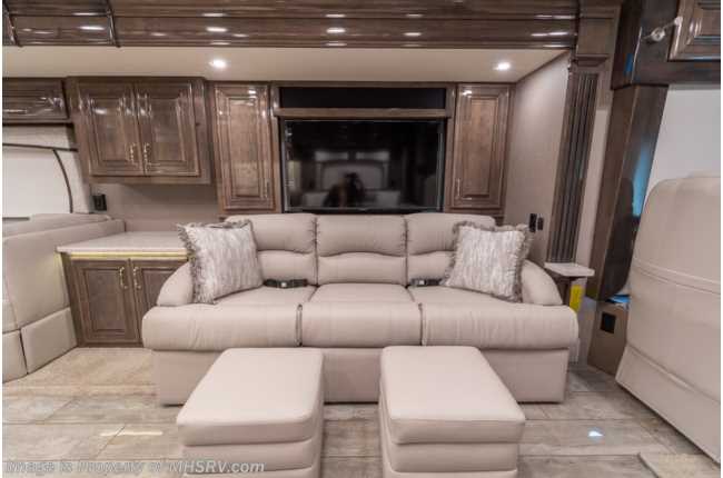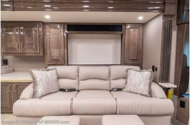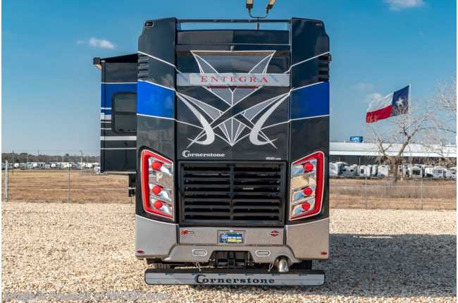 6-25-21 MSRP $761,498. All New 2021 Entegra Cornerstone Model 45X is approximately 44 feet 11 inches in length and rides on a Spartan K3 tag axle chassis with IFS featuring Entegra’s exclusive X-Bridge framing, powered by a Cummins 15-liter ISX turbocharged 605HP engine 1,950 lb. ft. torque at 1,200 RPM, an Allison 4000 series transmission and is backed by Entegra Coach's superior 2-Year/24K Mile Limited Coach & 5-Year Limited Structural Warranties. Options include the beautiful full body paint & graphics package, upgraded Stonewall interior, Winegard TRAV’LER dish network and solar panels. Entegra made the 2021 Cornerstone even more impressive with an incredible amount of updates including making the WiFi extender a standard feature, a kitchen window with slider and screen, solid pane kitchen window & day/night shades for this window are electrically powered off the Vegatouch® system, power driver’s cockpit window replacing the slider window, removable screen on entry door with a high grade cloth storage bag, added individual shut of valves to centralized water distribution point in wet bay, Aqua View Showermi$er with “GREEN” technology saves fresh water, free-standing dinette chairs now with industry-exclusive swivel seat base for great ergonomic functionality, additional A/C vent in rear wardrobe now on all floorplans, switched to EZ clean stainless 24” Fisher & Paykel® dishwasher drawer with easy access to controls, single bowl Blanco granite kitchen sink which is not only non-porous & hygienic but resistant to stains, scratches and chips, upscale tile on the floor, backsplash and shower high class quartz countertops, Saniflo macerator toilet, replaced the touch lights with the standard LED lights used throughout the rest of the coach and many more updates. For more complete details on this unit and our entire inventory including brochures, window sticker, videos, photos, reviews & testimonials as well as additional information about Motor Home Specialist and our manufacturers please visit us at MHSRV.com or call 800-335-6054. At Motor Home Specialist, we DO NOT charge any prep or orientation fees like you will find at other dealerships. All sale prices include a 200-point inspection, interior & exterior wash, detail service and a fully automated high-pressure rain booth test and coach wash that is a standout service unlike that of any other in the industry. You will also receive a thorough coach orientation with an MHSRV technician, an RV Starter's kit, a night stay in our delivery park featuring landscaped and covered pads with full hook-ups and much more! Read Thousands upon Thousands of 5-Star Reviews at MHSRV.com and See What They Had to Say About Their Experience at Motor Home Specialist. WHY PAY MORE?... WHY SETTLE FOR LESS?