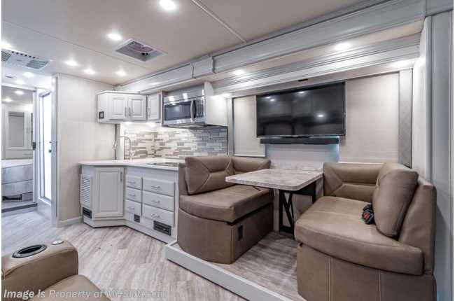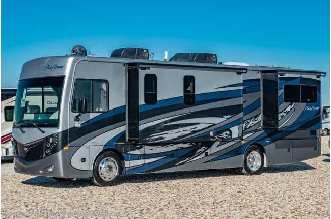 9/20/21 MSRP $268,372. New 2021 Fleetwood Pace Arrow for sale at Motor Home Specialist; the #1 Volume Selling Motor Home Dealership in the World. The 33D diesel pusher features 2 slides, Hide-A-Loft drop down queen bed, combination washer/dryer, and large living area. Features for 2021 include new interior color options, new slide-out trims, new interior shades, CPAP machine prep in bedroom overhead, fully integrated steering wheel controls, blindspot detection alert system, digital dash displace, auto LED headlights and more. Optional features include the upgraded Oceanfront Collection cabinetry, tankless water heater, power passenger seat w/ power footrest, motion power lounge, central vacuum and the technology package. The Fleetwood Pace Arrow offers an impressive list of standard features that include frameless dual pane windows, 90 gallon fuel tank, pass-thru storage, exterior entertainment center with 40" LED TV and soundbar, large living room TV, driver/passenger pedestal table, automotive inspired cockpit with digital dash, energy management system and much more. For more complete details on this unit and our entire inventory including brochures, window sticker, videos, photos, reviews & testimonials as well as additional information about Motor Home Specialist and our manufacturers please visit us at MHSRV.com or call 800-335-6054. At Motor Home Specialist, we DO NOT charge any prep or orientation fees like you will find at other dealerships. All sale prices include a 200-point inspection, interior & exterior wash, detail service and a fully automated high-pressure rain booth test and coach wash that is a standout service unlike that of any other in the industry. You will also receive a thorough coach orientation with an MHSRV technician, an RV Starter's kit, a night stay in our delivery park featuring landscaped and covered pads with full hook-ups and much more! Read Thousands upon Thousands of 5-Star Reviews at MHSRV.com and See What They Had to Say About Their Experience at Motor Home Specialist. WHY PAY MORE?... WHY SETTLE FOR LESS?