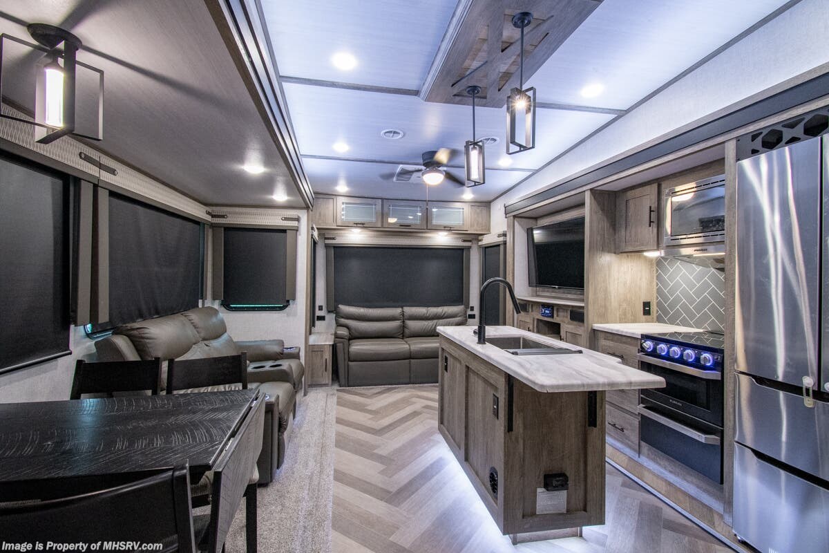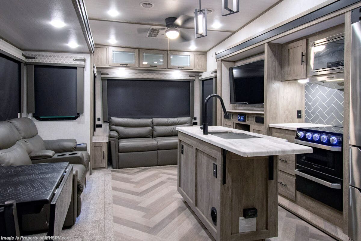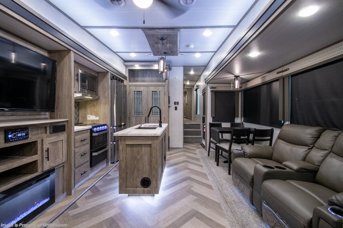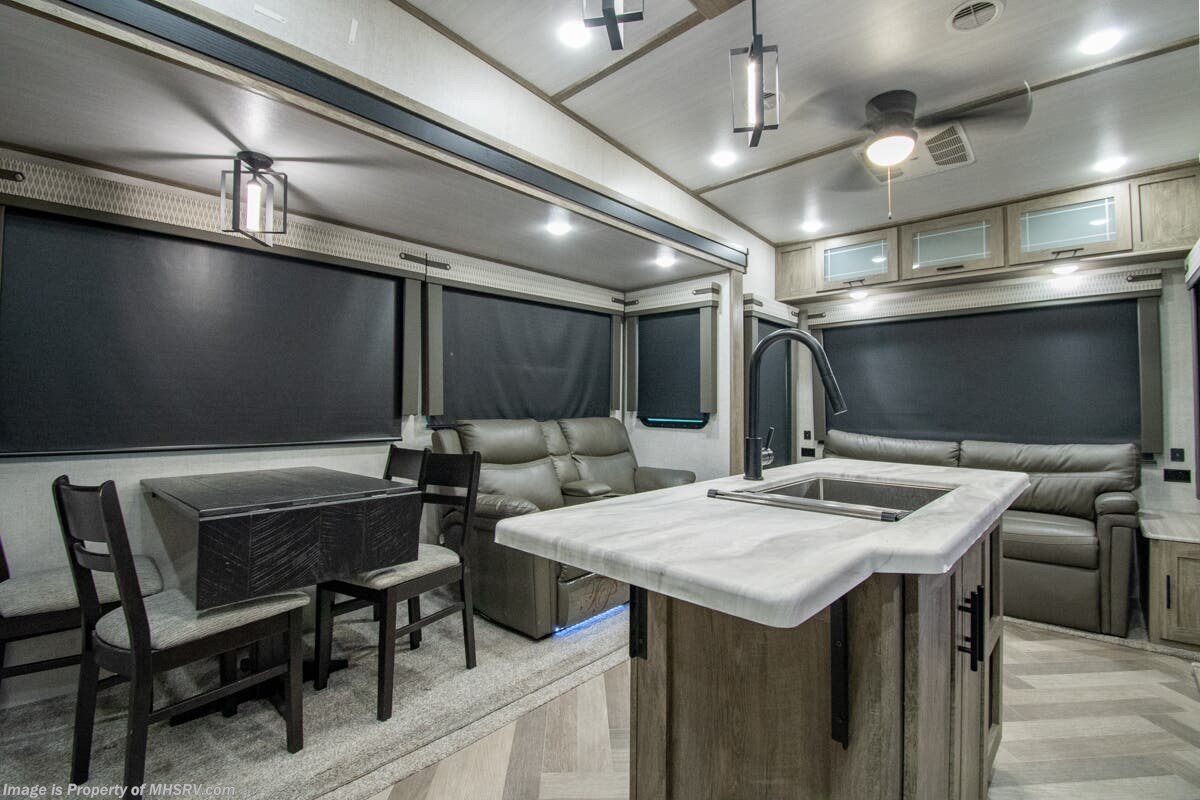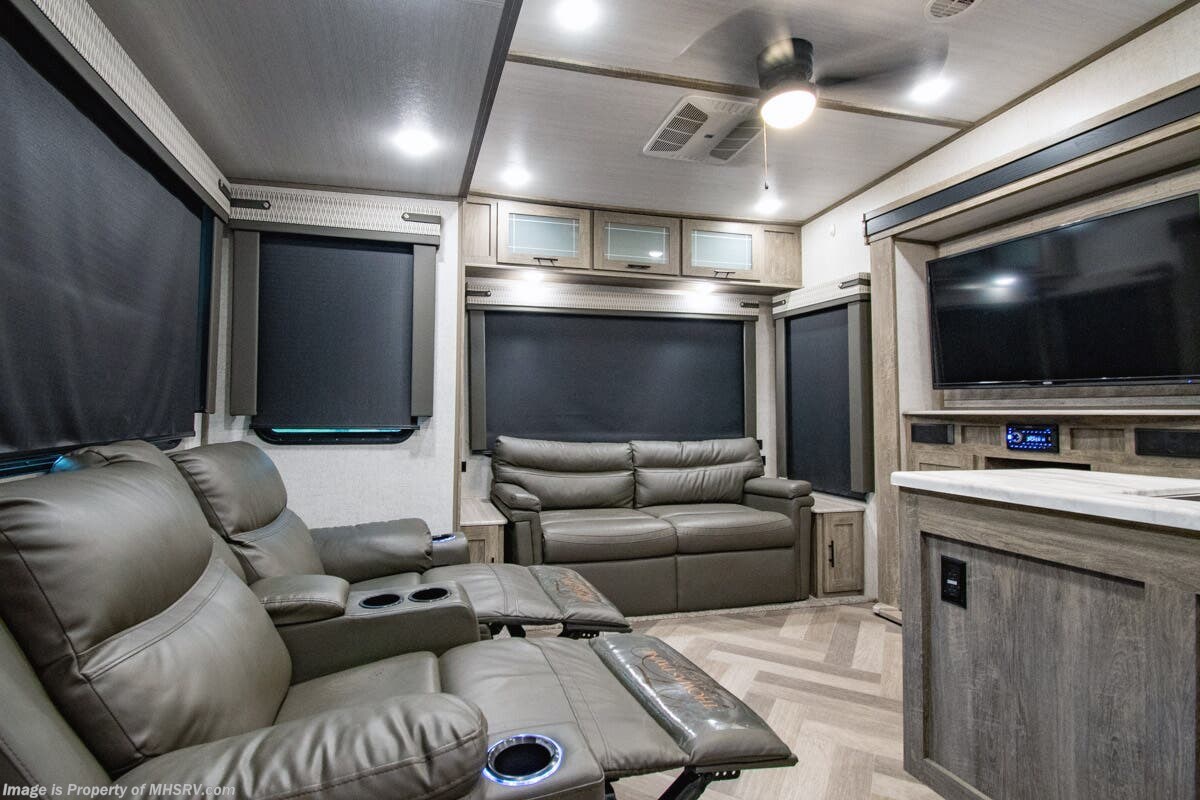 SOLD 5-5-2025 Used Forest River 5th Wheel for sale – Forest River Salem Hemisphere 369BL is approximately 43’ 0” feet in length, 4 slides and features auto leveling jacks, aluminum wheels, dual A/C’s, gas/electric water heater, power patio awning, pass through storage, black tank flush, 50 amp power, exterior shower, ladder, inverter, seating leather, kitchen backsplash, solid surface counter, 3 burner gas range with oven, glass shower door, king bed, living room TV, theater seats and much more. For additional details on this unit and our entire inventory including brochures, window sticker, videos, photos, reviews & testimonials as well as additional information about Motor Home Specialist and our manufacturers please visit us at MHSRV.com or call 800-335-6054. At Motor Home Specialist, we DO NOT charge any prep or orientation fees like you will find at other dealerships. Read Thousands upon Thousands of 5-Star Reviews at MHSRV.com and See What They Had to Say About Their Experience at Motor Home Specialist. WHY PAY MORE? WHY SETTLE FOR LESS?