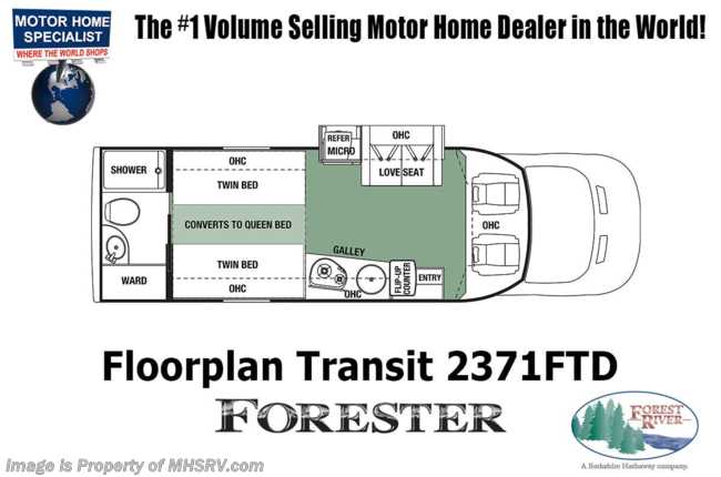 3/1/21 MSRP $106,203. All New 2021 Forest River Forester TS 2371FTD for sale at Motor Home Specialist; the Number 1 volume selling motor home dealership in the world. This beautiful RV features the Forest Transit Traveling in Style Package which includes ultra leather seating, back up & side view cameras with monitor, mirror link rear view mirror, convection microwave oven, in house entertainment center with exterior speakers and a 12 volt bedroom TV! In addition this well-appointed RV also features the optional full body paint exterior and Arctic Package. The Forester TS boasts an impressive list of standard features to ensure you have many fantastic trips including Gel Coat exterior fiberglass, power patio awning with LED light strip, slide-out awnings, fiberglass roof, one-piece fiberglass front cap, LED exterior lights, roto-cast storage compartments, tinted frameless windows, spare tire, integrated entry step, LP quick connect, exterior shower, black tank flush, full extension ball bearing drawer guides, upgraded memory foam mattress, ceiling ducted roof A/C, automatic generator transfer switch, water filtration system, Winegard digital antenna, cab area privacy curtain, power windows and door locks, shower head with flexible extension, shower skylight, Maxx-Air multi speed power fan with cover, 12V USB charging station and so much more!For additional details on this unit and our entire inventory including brochures, window sticker, videos, photos, reviews & testimonials as well as additional information about Motor Home Specialist and our manufacturers please visit us at MHSRV.com or call 800-335-6054. At Motor Home Specialist, we DO NOT charge any prep or orientation fees like you will find at other dealerships. All sale prices include a 200-point inspection, interior & exterior wash, detail service and a fully automated high-pressure rain booth test and coach wash that is a standout service unlike that of any other in the industry. You will also receive a thorough coach orientation with an MHSRV technician, a night stay in our delivery park featuring landscaped and covered pads with full hook-ups and much more! Read Thousands upon Thousands of 5-Star Reviews at MHSRV.com and See What They Had to Say About Their Experience at Motor Home Specialist. WHY PAY MORE? WHY SETTLE FOR LESS?