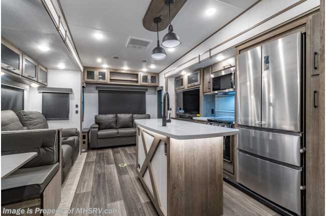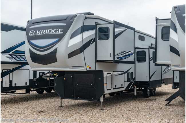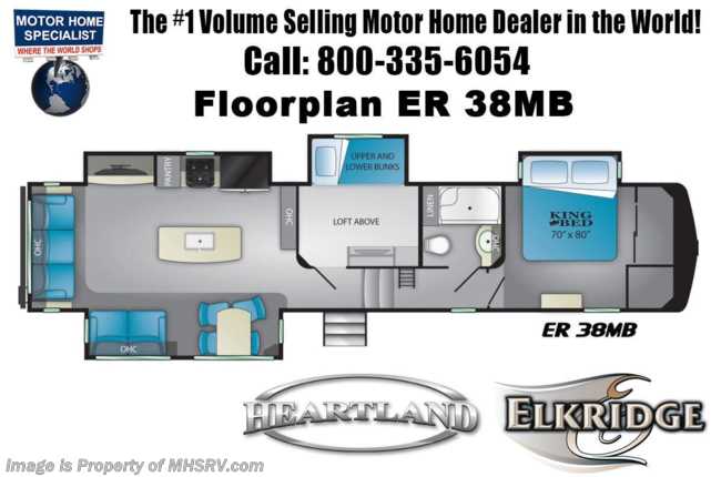/6-10-22 MSRP $80,153. ElkRidge luxury 5th wheels offer the ultimate in leisure living. The New 2021 Heartland Elkridge 38MB Bunk Model fifth wheel RV approximately 41 feet 5 inches in length featuring a king sized bed, bunks, and a loft area. Options include a 32" LED bedroom TV, booth dinette IPO free standing table, and Cold Climate Control Package. This beautiful fifth wheel also includes the Elkridge Summit Package option which includes high gloss sidewalls, painted fiberglass front cap, aluminum framed & laminated sidewalls, tinted safety glass windows, F rated tires, sixteen inch aluminum rims, spare tire, EZ Lube Dexter axles, Nev-R-Adjust brake package, 6 point leveling, 2nd A/C with 50 amp service, universal docking station with black tank flush & exterior shower, heated & enclosed underbelly, slam baggage style doors, stop/turn/tail lights, twin 30lb. LP tanks, back-up camera prep, power awning W/ LED light, solar prep, MORyde Step Above, outside speakers with LED lights, 70" tri-fold sofa (38MB/38RSRT), and Winegard Air 360. For more complete details on this unit and our entire inventory including brochures, window sticker, videos, photos, reviews & testimonials as well as additional information about Motor Home Specialist and our manufacturers please visit us at MHSRV.com or call 800-335-6054. At Motor Home Specialist, we DO NOT charge any prep or orientation fees like you will find at other dealerships. All sale prices include a 200-point inspection and interior & exterior wash and detail service. You will also receive a thorough RV orientation with an MHSRV technician, an RV Starter's kit, a night stay in our delivery park featuring landscaped and covered pads with full hook-ups and much more! Read Thousands upon Thousands of 5-Star Reviews at MHSRV.com and See What They Had to Say About Their Experience at Motor Home Specialist. WHY PAY MORE?... WHY SETTLE FOR LESS?