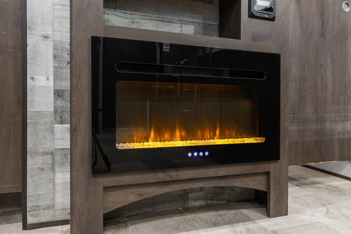 This RV features patio awning, pass through storage, docking lights, 7 foot ceilings, fireplace, 3 burner gas range with oven, solid surface counter and much more.