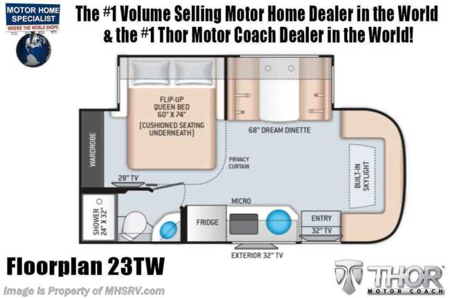7-2-21 MSRP $121,381. All New 2021 Thor Gemini RUV Model 23TW with a slide for sale at Motor Home Specialist; the #1 Volume Selling Motor Home Dealership in the World. New features for 2021 include a 3.5L Ecoboost V6 engine with 306HP & 400lb. of torque with all-wheel drive, 10-speed transmission, AutoTrac with roll stability control, hill start assist, lane departure warning system, pre-collision assist with emergency braking system, automatic high-beam headlights, rain sensing windshield wipers, and a 4KW Onan gas generator. Optional equipment includes the HD-Max colored sidewalls and graphics, 12V attic fan, and a 15K A/C. You will also be pleased to find a host of standard appointments that include a tankless water heater, refrigerator with stainless steel door insert, dash CD player with navigation, one-piece front cap with built in skylight featuring an electric shade, dash applique, swivel passenger chair, euro-style cabinet doors with soft close hidden hinges, holding tanks with heat pads and so much more. For additional details on this unit and our entire inventory including brochures, window sticker, videos, photos, reviews & testimonials as well as additional information about Motor Home Specialist and our manufacturers please visit us at MHSRV.com or call 800-335-6054. At Motor Home Specialist, we DO NOT charge any prep or orientation fees like you will find at other dealerships. All sale prices include a 200-point inspection, interior & exterior wash, detail service and a fully automated high-pressure rain booth test and coach wash that is a standout service unlike that of any other in the industry. You will also receive a thorough coach orientation with an MHSRV technician, a night stay in our delivery park featuring landscaped and covered pads with full hook-ups and much more! Read Thousands upon Thousands of 5-Star Reviews at MHSRV.com and See What They Had to Say About Their Experience at Motor Home Specialist. WHY PAY MORE? WHY SETTLE FOR LESS?
