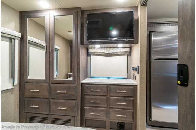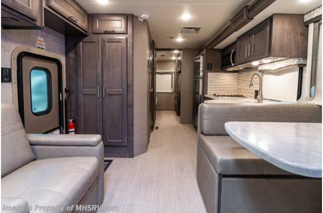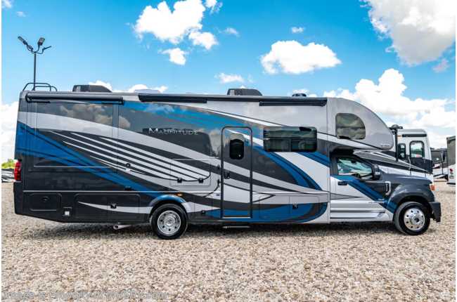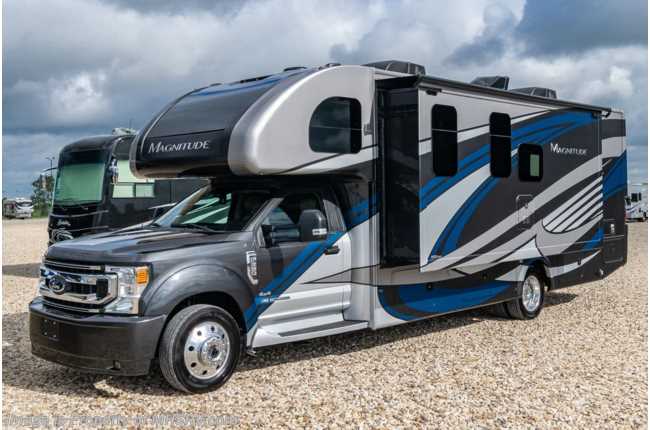 1/7/21 MSRP $221,288. New 2021 Thor Motor Coach Magnitude XG32 Super C is approximately 33 feet 6 inches in length with two slide outs and is powered by the Ford® 6.7L Power Stroke® V8 turbo diesel engine with 330HP, 825 lb.-ft. torque and 10 speed transmission with selectable drive modes including Tow/Haul, Eco, Deep Sand/Snow. Also includes a SYNC 3 Enhanced Voice Recognition Communications and Entertainment System, 8" Color LCD touchscreen with swiping capability, 911 assist, AppLink and smart-charging USB ports and navigation. New features for 2021 include general décor updates throughout the coach, HDMI switcher on all TVs, solar charging system with power controller, lights now deploy in the arms of the Care Free awning, new grill, automatic head lights and the FordPass Connect 4G Wi-Fi modem. This beautiful RV also features the optional single child safety tether. The Magnitude Super C also features a 3 camera monitoring system, aluminum wheels, automatic leveling jacks, power patio awning with LED lighting, frameless windows, keyless entry, residential refrigerator, large OTR convection microwave, solid surface kitchen counter top, ball bearing drawer guides, king size bed, large TV in living area, exterior entertainment center with sound bar, 6KW Onan diesel generator with automatic generator start, multiplex wiring control system, tankless water heater, 1800-watt inverter and much more. For additional details on this unit and our entire inventory including brochures, window sticker, videos, photos, reviews & testimonials as well as additional information about Motor Home Specialist and our manufacturers please visit us at MHSRV.com or call 800-335-6054. At Motor Home Specialist, we DO NOT charge any prep or orientation fees like you will find at other dealerships. All sale prices include a 200-point inspection, interior & exterior wash, detail service and a fully automated high-pressure rain booth test and coach wash that is a standout service unlike that of any other in the industry. You will also receive a thorough coach orientation with an MHSRV technician, a night stay in our delivery park featuring landscaped and covered pads with full hook-ups and much more! Read Thousands upon Thousands of 5-Star Reviews at MHSRV.com and See What They Had to Say About Their Experience at Motor Home Specialist. WHY PAY MORE? WHY SETTLE FOR LESS?