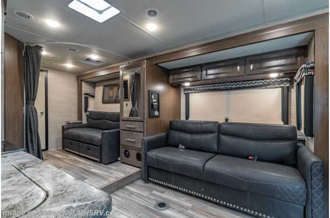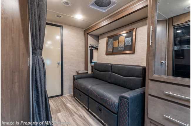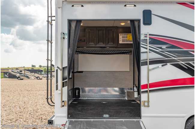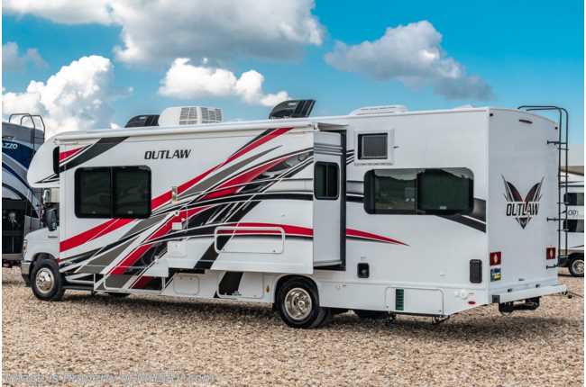 12/11/20 MSRP $135,346. New 2021 Thor Motor Coach Outlaw Toy Hauler model 29S measures 30 feet 3 inches in length with the new Ford chassis with a 7.3L V8 engine, 350HP and 468lb-ft of torque, slide-out, ramp door, swivel driver & passenger chairs, dual sofas and a cab over loft. Options include the HD-Max exterior, 100 watt solar charging system with power controller and the child safety net. New features for 2021 include all new exterior colors, a new dash stereo allowing direct USB mirroring port, general décor updates throughout, LED taillights IPO bulb lights and much more. The Outlaw toy hauler RV has an incredible list of standard features such as a tankless water heater, Winegard ConnecT WiFi, holding tanks with heat pads, attic fan, bug screen curtain in the garage, lighted battery disconnect switch, large kitchen sink, recessed cooktop with glass cover, fully automatic leveling jacks, large swivel TV with DVD player in the cab over bunk area, power patio awning, exterior shower, heated exterior mirrors, 3 camera monitoring system, valve stem extenders, convection microwave, flat panel TV in the garage, Onan generator and much more. For additional details on this unit and our entire inventory including brochures, window sticker, videos, photos, reviews & testimonials as well as additional information about Motor Home Specialist and our manufacturers please visit us at MHSRV.com or call 800-335-6054. At Motor Home Specialist, we DO NOT charge any prep or orientation fees like you will find at other dealerships. All sale prices include a 200-point inspection, interior & exterior wash, detail service and a fully automated high-pressure rain booth test and coach wash that is a standout service unlike that of any other in the industry. You will also receive a thorough coach orientation with an MHSRV technician, a night stay in our delivery park featuring landscaped and covered pads with full hook-ups and much more! Read Thousands upon Thousands of 5-Star Reviews at MHSRV.com and See What They Had to Say About Their Experience at Motor Home Specialist. WHY PAY MORE? WHY SETTLE FOR LESS?