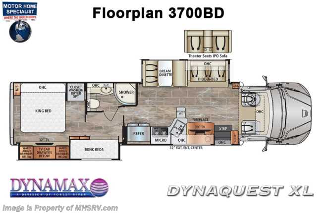 10/28/22 MSRP $453,787. New 2022 Dynamax Dynaquest XL 3700BD Bunk Model is approximately 39 feet 8 inches in length. Additional options on this beautiful RV include a washer/dryer, cab over loft, and low temp lithium batteries. For more complete details on this unit and our entire inventory including brochures, window sticker, videos, photos, reviews & testimonials as well as additional information about Motor Home Specialist and our manufacturers please visit us at MHSRV.com or call 800-335-6054. At Motor Home Specialist, we DO NOT charge any prep or orientation fees like you will find at other dealerships. All sale prices include a 200-point inspection, interior & exterior wash, detail service and a fully automated high-pressure rain booth test and coach wash that is a standout service unlike that of any other in the industry. You will also receive a thorough coach orientation with an MHSRV technician, an RV Starter's kit, a night stay in our delivery park featuring landscaped and covered pads with full hook-ups and much more! Read Thousands upon Thousands of 5-Star Reviews at MHSRV.com and See What They Had to Say About Their Experience at Motor Home Specialist. WHY PAY MORE?... WHY SETTLE FOR LESS?