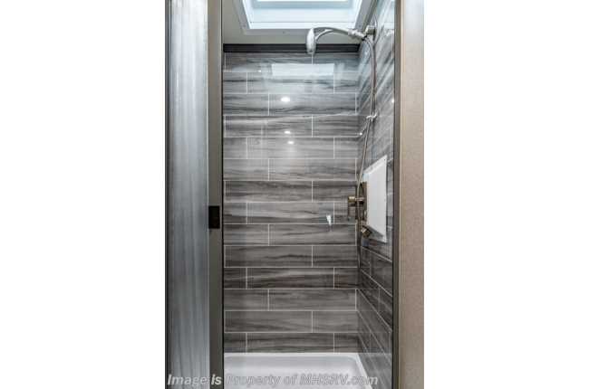 • Shower with Light-Weight, Soft-Sided Shower Door and Skylight