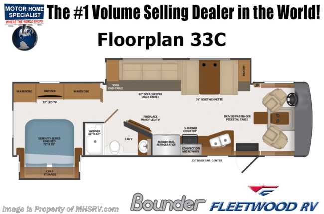 2022 Fleetwood Bounder 33C W/ Theater Seating Sofa,  Satellite, Solar, Steering Stabilizing System, Collision Mitigation & More Floorplan