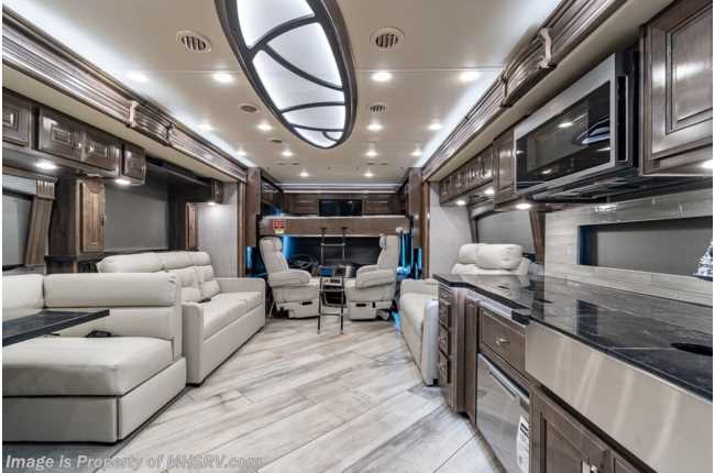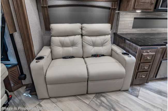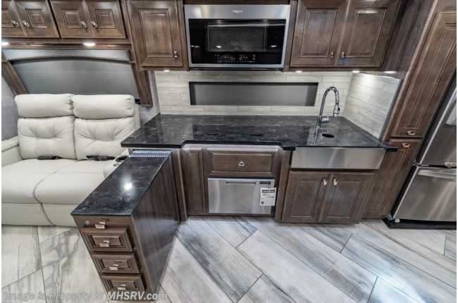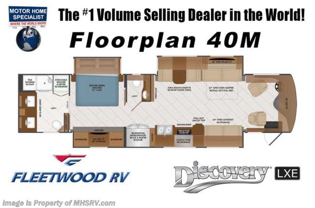 11-16-22 MSRP $449,743. New 2022 Fleetwood Discovery LXE 40M Bath & 1/2 for sale at Motor Home Specialist; the #1 Volume Selling Motor Home Dealership in the World. This Beautiful RV is approximately 40 feet 1 inch in length and features 3 slides including a full-wall slide, king bed, fireplace, and large living area. Optional features include exterior freezer, motion power lounge, drop-down bed, technology package, facing dinette, Winegard In Motion Satellite, exterior freezer, 2nd mounted roof awning, window awning package, blind spot detection, heated floors, and brakesync. The Fleetwood Discovery LXE boasts an impressive list of standard features including a recessed induction cooktop, convection microwave, residential refrigerator, full-coach water filtration system, power entry step cover, Safe-T-View camera system, washer and dryer, dishwasher, stainless steel farmhouse style galley sink, Firefly system color touch screen, updated dash with dual LED screens, digital dash, fully integrated smart wheel controls, push button start with key fob, new Freedom Bridge platform, auto LED headlights, solar panel, WiFi system with WiFi Ranger, full extension drawer guides, tile glass door shower, Firefly multiplex wiring, Aqua Hot, 8KW Onan generator, full pass through exterior storage with LED lighting, exterior entertainment center w/ soundbar and much more. For more complete details on this unit and our entire inventory including brochures, window sticker, videos, photos, reviews & testimonials as well as additional information about Motor Home Specialist and our manufacturers please visit us at MHSRV.com or call 800-335-6054. At Motor Home Specialist, we DO NOT charge any prep or orientation fees like you will find at other dealerships. All sale prices include a 200-point inspection, interior & exterior wash, detail service and a fully automated high-pressure rain booth test and coach wash that is a standout service unlike that of any other in the industry. You will also receive a thorough coach orientation with an MHSRV technician, an RV Starter's kit, a night stay in our delivery park featuring landscaped and covered pads with full hook-ups and much more! Read Thousands upon Thousands of 5-Star Reviews at MHSRV.com and See What They Had to Say About Their Experience at Motor Home Specialist. WHY PAY MORE?... WHY SETTLE FOR LESS?