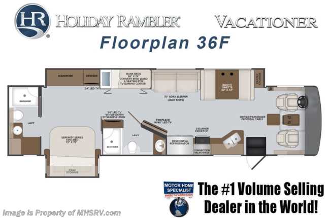 2/1/22 MSRP $244,826. New 2022 Holiday Rambler 36F 2 Full Bath Bunk Model RV for sale at Motor Home Specialist, the #1 Volume Selling Motor Home Dealership in the World. Additional options include 3 burner range with oven, combination washer/dryer, drop down bed, power cord reel, upgraded WiFi package, King stationary satellite system, sumo springs, and collision mitigation. For additional details on this unit and our entire inventory including brochures, window sticker, videos, photos, reviews & testimonials as well as additional information about Motor Home Specialist and our manufacturers please visit us at MHSRV.com or call 800-335-6054. At Motor Home Specialist, we DO NOT charge any prep or orientation fees like you will find at other dealerships. All sale prices include a 200-point inspection, interior & exterior wash, detail service and a fully automated high-pressure rain booth test and coach wash that is a standout service unlike that of any other in the industry. You will also receive a thorough coach orientation with an MHSRV technician, a night stay in our delivery park featuring landscaped and covered pads with full hook-ups and much more! Read Thousands upon Thousands of 5-Star Reviews at MHSRV.com and See What They Had to Say About Their Experience at Motor Home Specialist. WHY PAY MORE? WHY SETTLE FOR LESS?