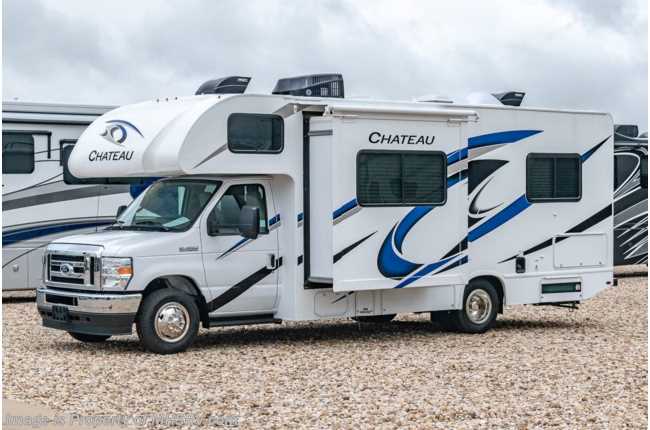 5-9-23 5-9-23 MSRP $140,557. The new 2023 Thor Motor Coach Chateau Class C RV 25V is approximately 26 feet 5 inches in length featuring a Ford chassis. Additional options include cab-over safety net, single child safety tether, bedroom TV, exterior entertainment center, upgraded A/C, second auxiliary battery, outside shower, heated remote mirrors w/ side view cameras, leatherette driver/passenger seats, cockpit carpet mat, keyless cab entry, valve stem extenders, dash applique, 3 burner range w/ glass cover & oven and holding tanks with heat pads. The Chateau RV has an incredible list of standard features including power windows and locks, power patio awning with integrated LED lighting, in-dash media center AM/FM & Bluetooth, power vent in bath, skylight above shower, Onan generator, cab A/C and so much more. For additional details on this unit and our entire inventory including brochures, window sticker, videos, photos, reviews & testimonials as well as additional information about Motor Home Specialist and our manufacturers please visit us at MHSRV.com or call 800-335-6054. At Motor Home Specialist, we DO NOT charge any prep or orientation fees like you will find at other dealerships. All sale prices include a 200-point inspection, interior & exterior wash, detail service and a fully automated high-pressure rain booth test and coach wash that is a standout service unlike that of any other in the industry. You will also receive a thorough coach orientation with an MHSRV technician, a night stay in our delivery park featuring landscaped and covered pads with full hook-ups and much more! Read Thousands upon Thousands of 5-Star Reviews at MHSRV.com and See What They Had to Say About Their Experience at Motor Home Specialist. WHY PAY MORE? WHY SETTLE FOR LESS?