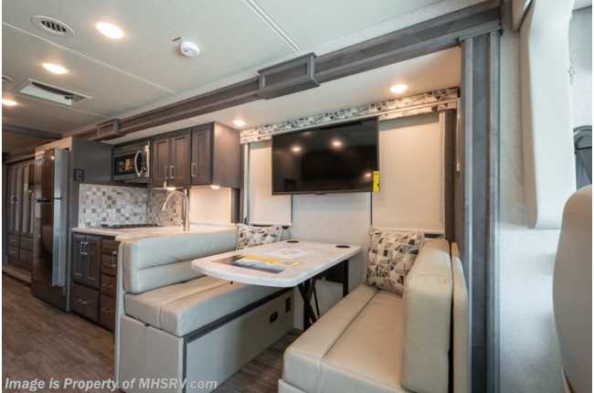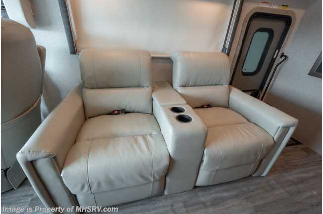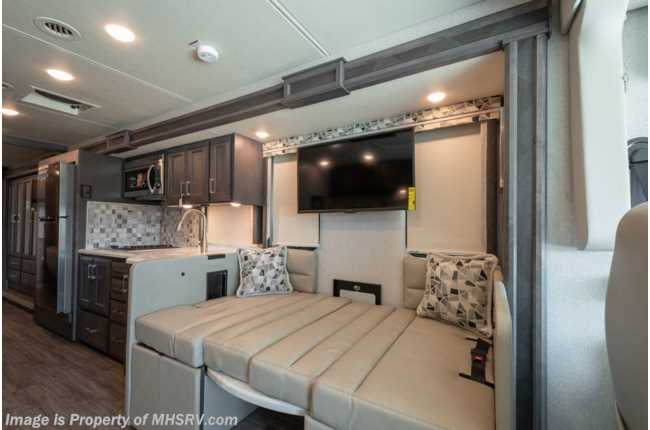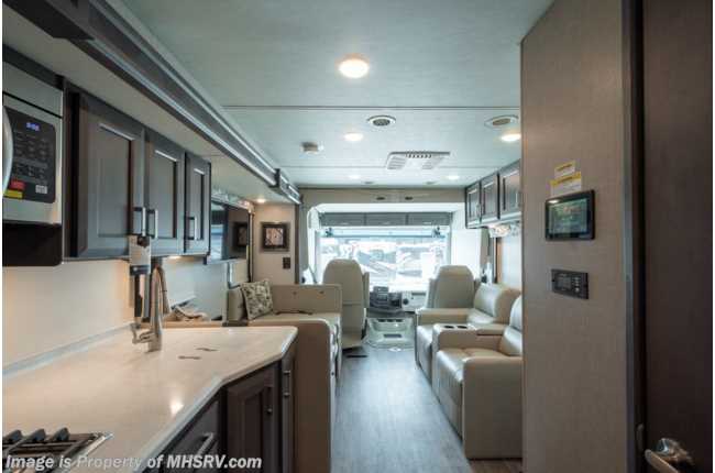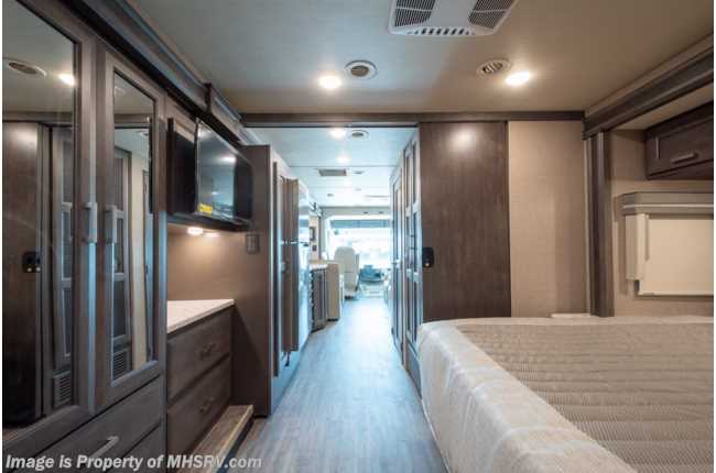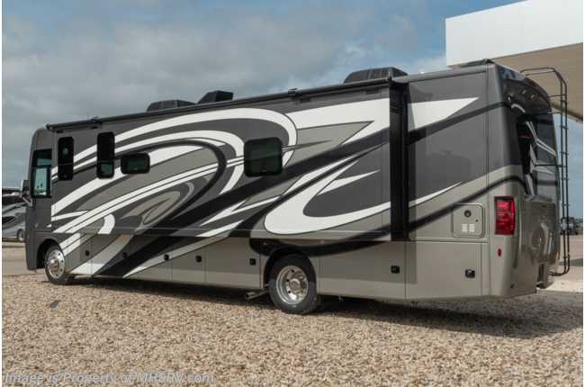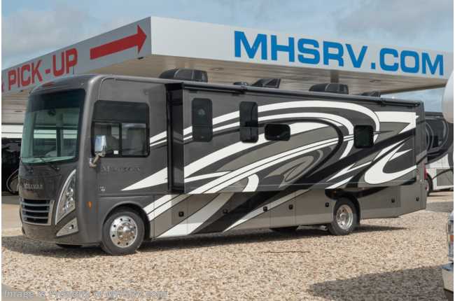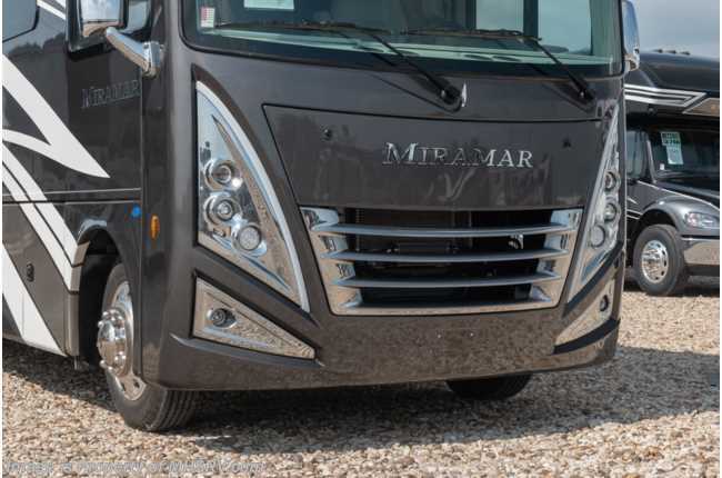 9-15-2023 MSRP $261,091. The New 2023 Thor Motor Coach Miramar 34.7 Bath & 1/2 class A gas motor home measures approximately 36 feet in length featuring full wall slide & bedroom slide with king size Tilt-A-View™ bed, high polished aluminum wheels and automatic leveling system with touch pad controls. This amazing RV also features the updated Ford chassis, automatic headlights, steering wheel with tilt/telescoping steering column and hill start assist. This beautiful RV features the optional leatherette theater seats with footrests and frameless dual pane windows. The Thor Motor Coach Miramar also features one of the most impressive lists of standard equipment in the RV industry including a power patio awning with LED lights, solar charging system with power controller, 84” interior heights, convection microwave, frameless windows, residential refrigerator, Winegard® ConnecT™ WiFi Extender, Onan generator, bedroom TV, 1800-watt inverter, touchscreen dash radio with Bluetooth® & Sirius/XM® Radio, electric entrance steps, tankless water heater and much more. For additional details on this unit and our entire inventory including brochures, window sticker, videos, photos, reviews & testimonials as well as additional information about Motor Home Specialist and our manufacturers please visit us at MHSRV.com or call 800-335-6054. At Motor Home Specialist, we DO NOT charge any prep or orientation fees like you will find at other dealerships. All sale prices include a multi-point inspection, interior & exterior wash, detail service and a fully automated high-pressure rain booth test and coach wash that is a standout service unlike that of any other in the industry. You will also receive a thorough coach orientation with an MHSRV technician, a night stay in our delivery park featuring landscaped and covered pads with full hook-ups and much more! Read Thousands upon Thousands of 5-Star Reviews at MHSRV.com and see what they had to say about their experience at Motor Home Specialist. MHSRV.com or 800-335-6054 - Why Pay More? Why Settle for Less?