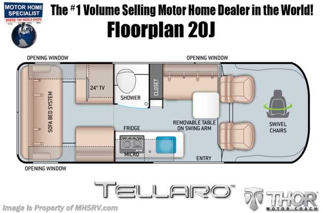 2023 Thor Motor Coach Tellaro 20J W/ New 9 Speed Tranmission, Lane Assist, Large Digital Display, Swivel Seats & Retractable Rooftop Floorplan