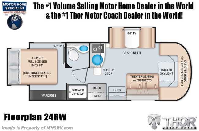 • The standard and optional features provided below were copied directly from either the manufacturer's website, manufacturer's brochures and or other promotional materials provided by the manufacturer of the RV at the time the unit was offered for sale. These standards, options and, other miscellaneous information are subject to change without notice and may or may not be a part of the actual coach for sale. In some cases, standard equipment is not standard on all floor plans. Any weights, lengths, sizes, etc. are estimates only and may also change at any time. Motor Home Specialist is not responsible for any changes, updates or errors in the information provided by the manufacturer. Please verify before purchase If you have any questions or concerns in regards to the features and options on this unit. Please feel free to ask a Motor Home Specialist representative or call the factory for additional information.