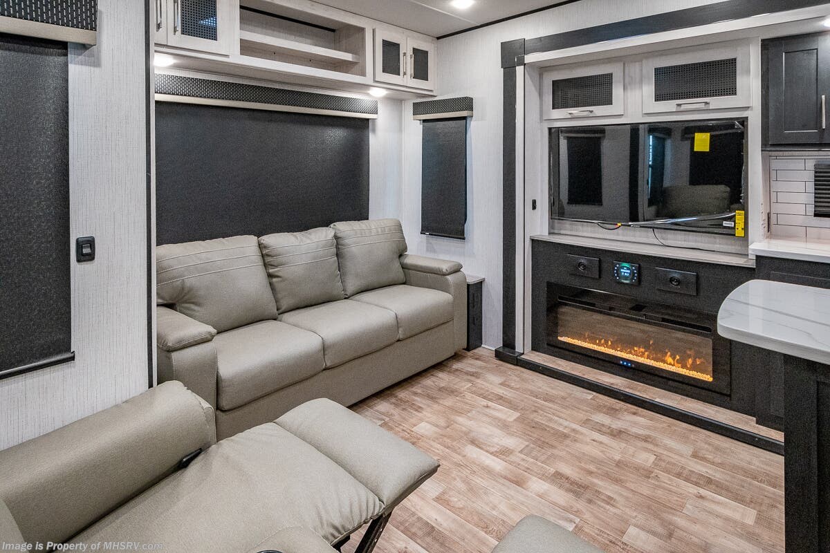 MSRP $112,140. ElkRidge luxury 5th wheels offer the ultimate in leisure living. The New 2023 Heartland Elkridge 37FBH Bath & 1/2 fifth wheel RV approximately 42 feet 5 inches in length featuring a king sized bed, LED TV and spacious living area. Options include a dual roof mounted solar. This beautiful fifth wheel also includes the Elkridge Summit & Suit Packages which include solid stained hardwood interior cabinets, dinette table w/ 4 chairs, solid surface countertops, drawers w/ solid bottoms and full extension draw guides, gas oven & 3 burner cook top with glass stove cover, microwave, residential refrigerator, electric fireplace, ducted A/C system, water heater, 48” shower w/ skylight, porcelain foot flush toilet, stackable washer/dryer prep, king bed, cold crack resistant floor, LED TV, Tri-Fold sleeper style sofa, theater style seats, LED interior lightning, roller style shades, Bluetooth speaker prep, wireless charging stations, high gloss sidewalls, painted fiberglass front cap, aluminum framed & laminated sidewalls w/ Azdel, tinted safety glass windows, F Rated tires, aluminum rims, spare tire, MORryde 3000 suspension, EZ lube dexter axles, NEV-R-Adjust Brake Package, 6pt hydraulic leveling, 2nd A/C, 50Amp service, Universal docking station with black tank flush & exterior shower, heated & enclosed underbelly, slam baggage style doors, stop/turn/tail lights, twin 30#LP, back-up camera prep, extra large grab handle, power awning w/ LED light, solar prep, solid entrance step w/ strut assist, Winegard Air 360+, dog tether, 12V power cord reel, 12V heating pads and much more. For additional details on this unit and our entire inventory including brochures, window sticker, videos, photos, reviews & testimonials as well as additional information about Motor Home Specialist and our manufacturers please visit us at MHSRV.com or call 800-335-6054. At Motor Home Specialist, we DO NOT charge any prep or orientation fees like you will find at other dealerships. All sale prices include a 200-point inspection, interior & exterior wash, detail service and a fully automated high-pressure rain booth test and coach wash that is a standout service unlike that of any other in the industry. You will also receive a thorough coach orientation with an MHSRV technician, a night stay in our delivery park featuring landscaped and covered pads with full hook-ups and much more! Read Thousands upon Thousands of 5-Star Reviews at MHSRV.com and See What They Had to Say About Their Experience at Motor Home Specialist. WHY PAY MORE? WHY SETTLE FOR LESS?